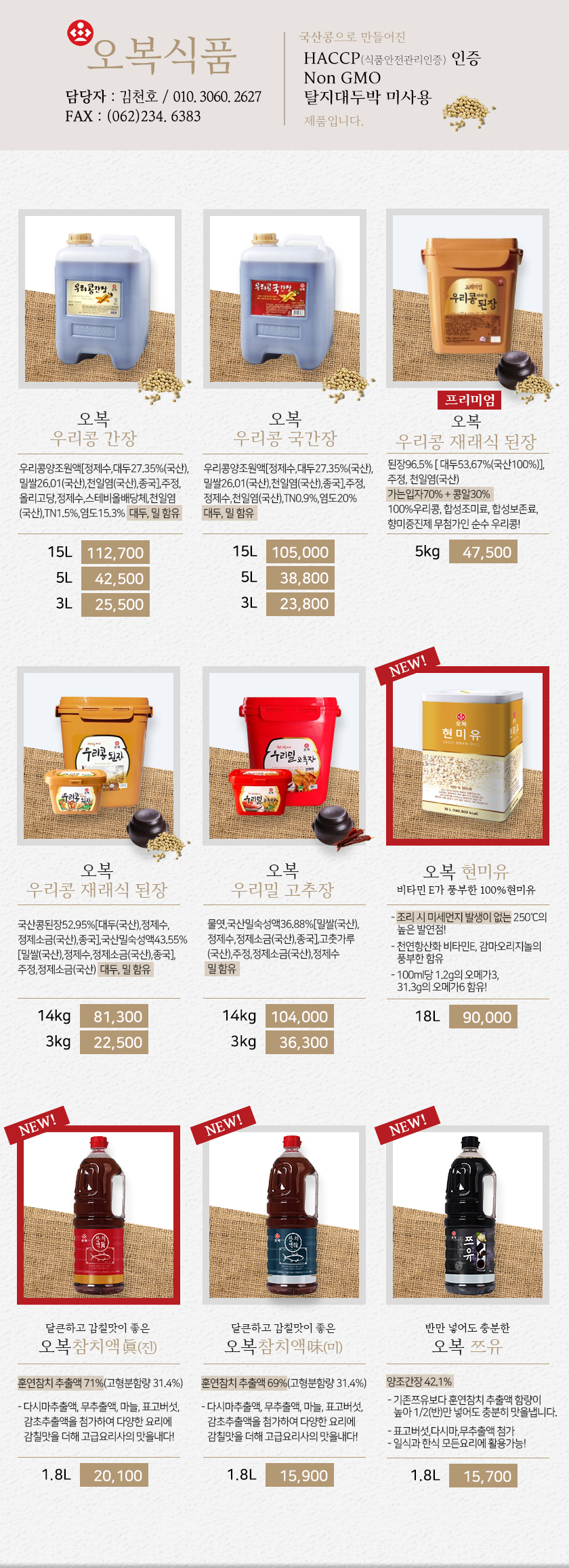 ✨[ (주) 오복식품 ] 2025년 12월 단가표 입니다. (Non-gmo 서류 첨부 / 간장 / 국간장 / 고추장 / 된장 / 현미유 / 참치액 / 쯔유 )✨