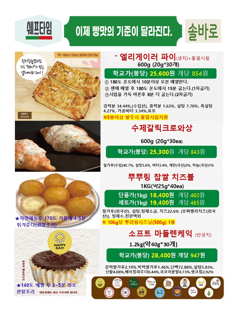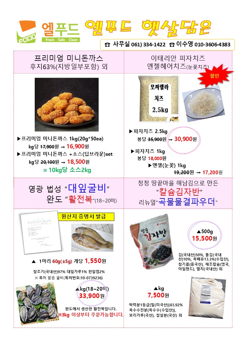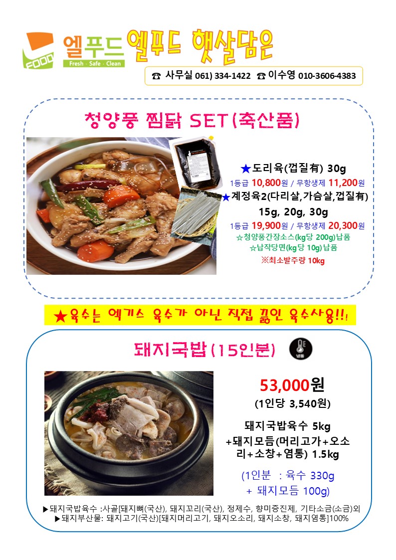 ★★★★ 엘푸드 12월~02월 엘푸드햇살담은(나비원 미꾸라지퓨레,다소니) 학교 단가표 ★★★★