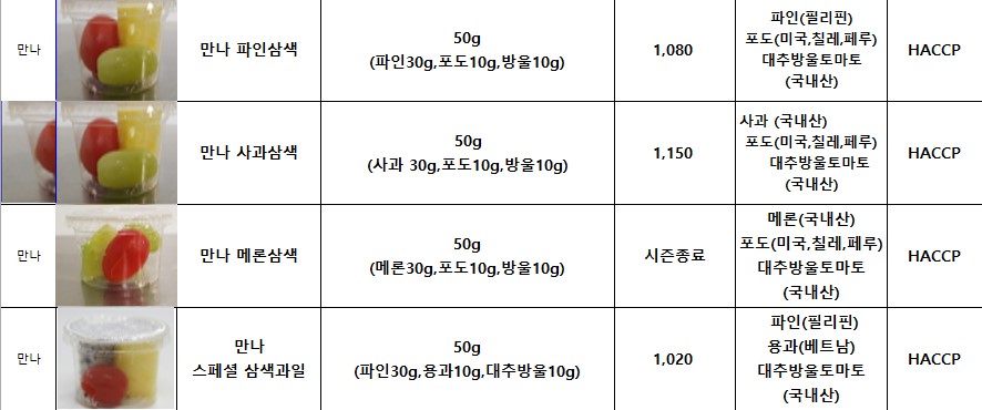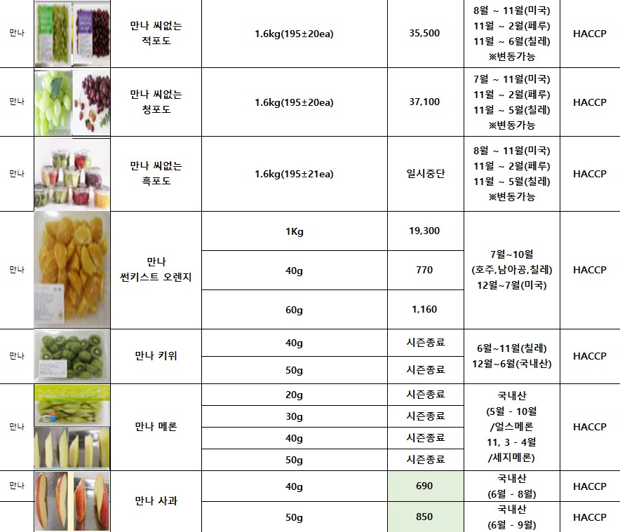 *** SFC푸드맘 만나 생과일 12월 단가표입니다***