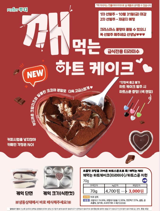** SFC푸드맘 푸디 "깨먹는 하트 케이크" 가격할인입니다. 4,700원-->3,000원 **