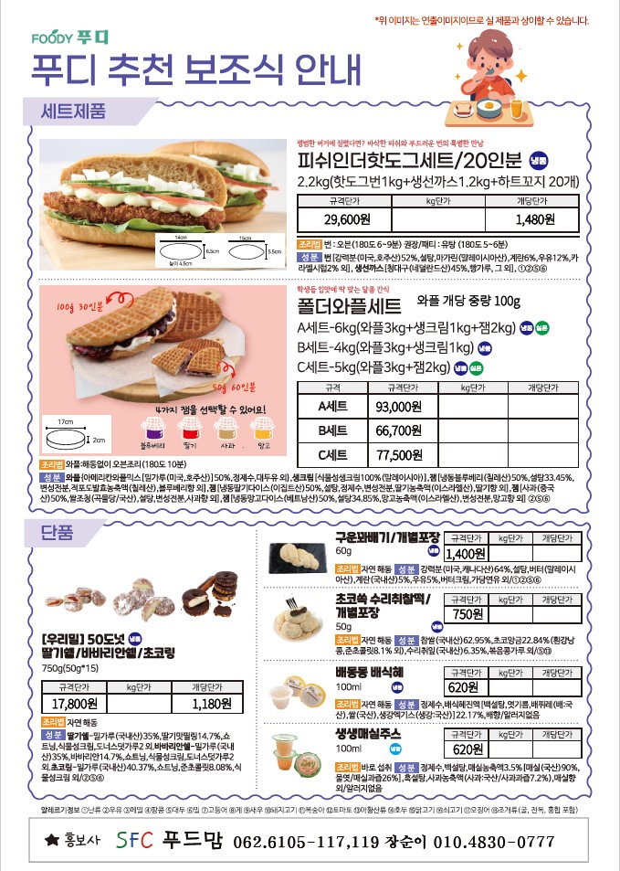 **SFC푸드맘 푸디 12월 단가표입니다.(추천단가포함)**