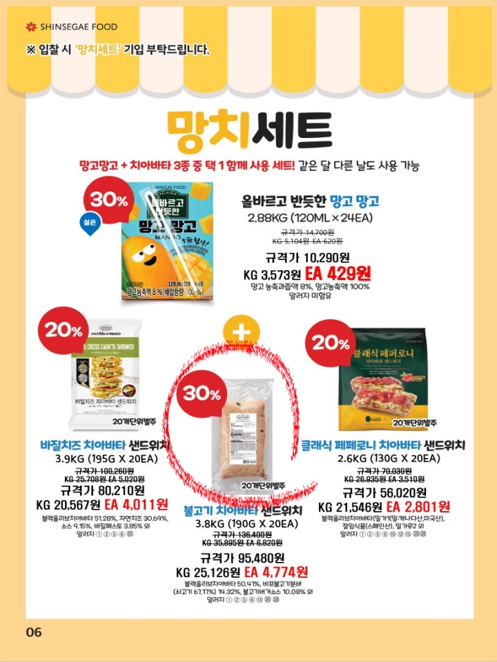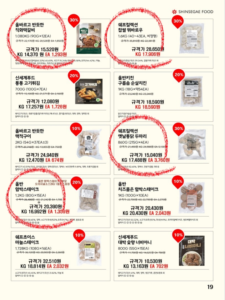 [4월] 선한푸드 ★★★ 신세계푸드 단가표 ★★★