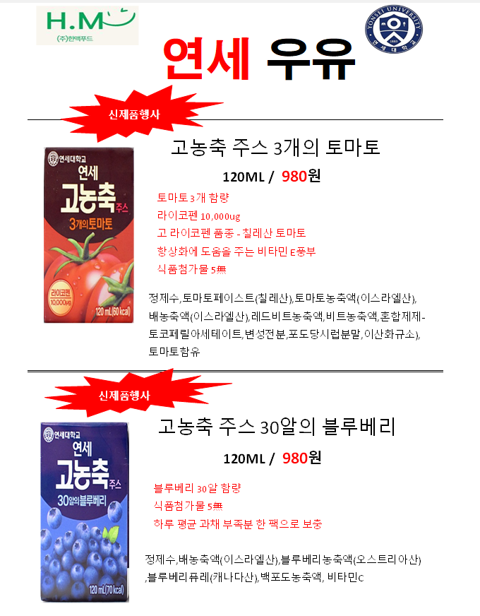♥♥한맥푸드♥♥ "연세우유 신제품 고농축주스 할인행사"