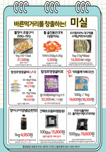 ✿✿[동원에프엔에프] 초록푸드,급식대장 12월 단가표✿✿