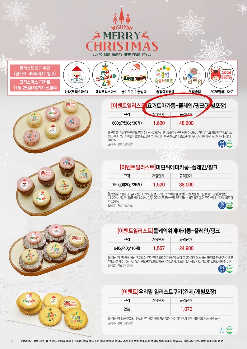✿✿[동원에프엔에프] 초록푸드,급식대장 12월 단가표✿✿