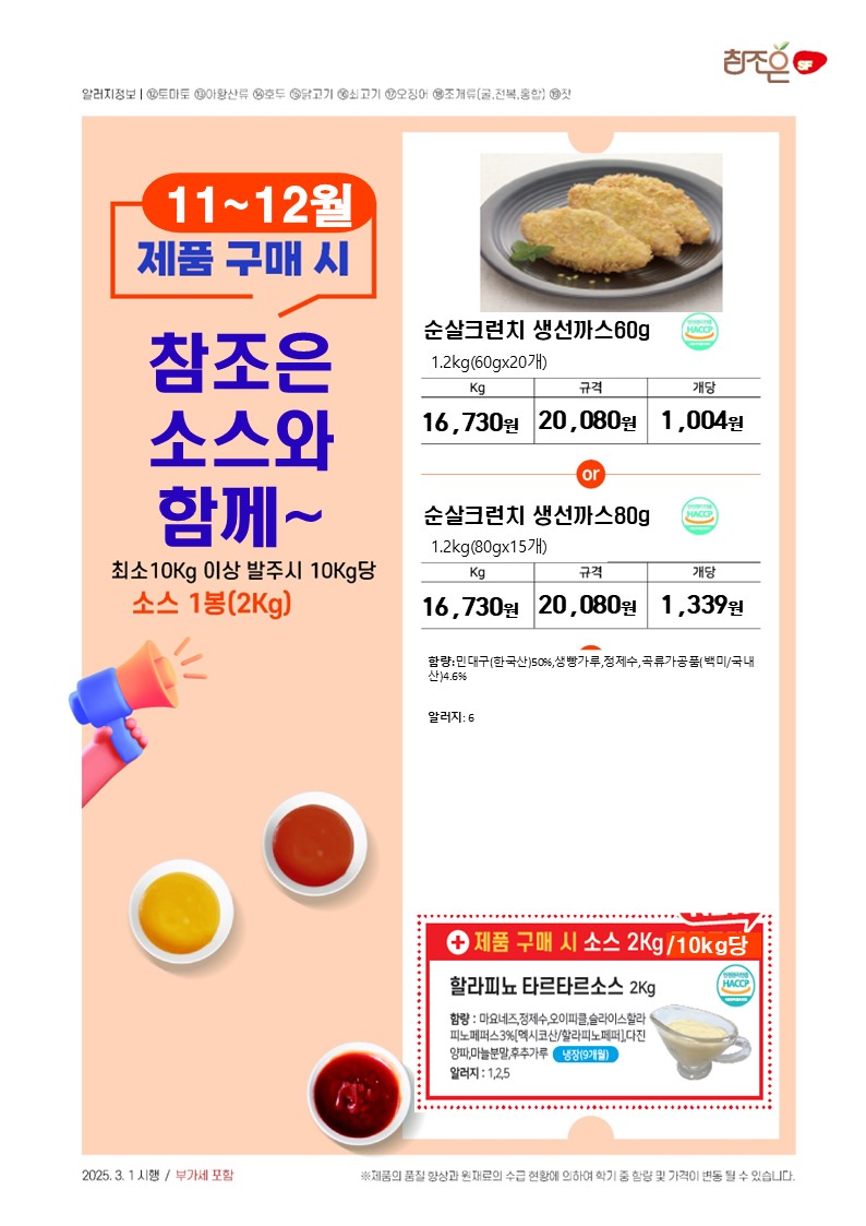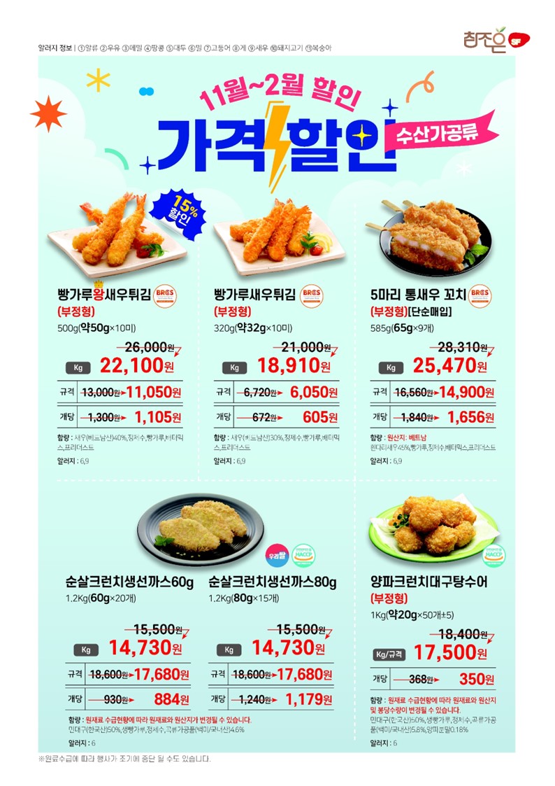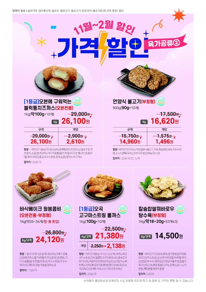 ♠참조은♠[2026년 1~2월 단가표](밀크초코볼케익,프리미엄자숙꼬마전복,세줄옹떡이,우리쌀꼬마김밥,크리미머쉬룸포타쥬,통큰고구마튀김,감탄케익,무안사랑돈안심카츠,우리쌀크런치 오징어 꿔바로우,우리쌀크런치명태까스,짬뽕군만두.오리지널큐스테이크,la갈비맛큐브스테이크,통치즈가스, 통큰더블함박,수랏간돌돌떡말이,수랏간돼지갈비후라이드,바삭베이크윙봉콤비,수랏간간장돼지불고기,수