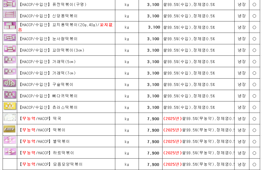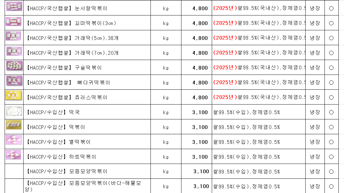 ♥♥송곡푸드♥♥ 참들애 떡 (가래떡,떡볶이떡,떡국떡) 1~2월 단가표