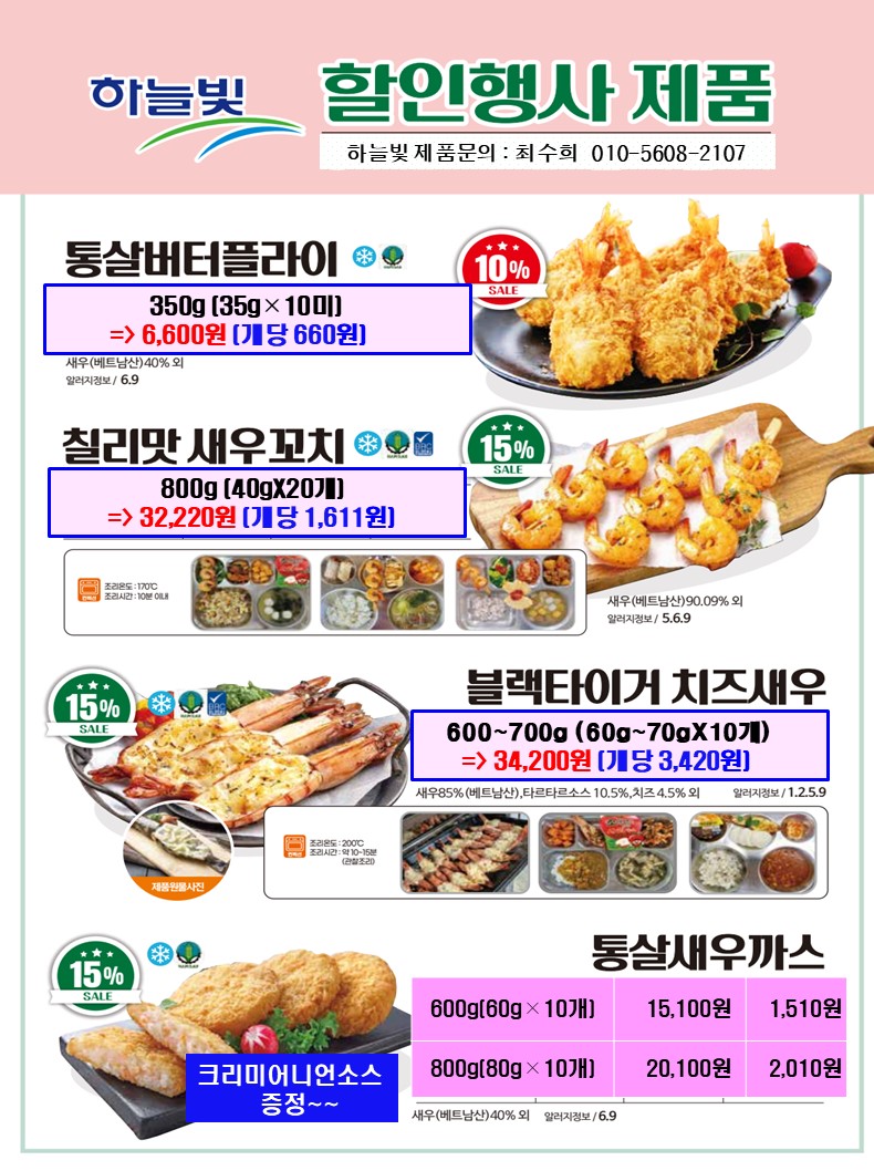 ▣ 하늘빛 특식 ~~ 블랙타이거 치즈새우10%행사