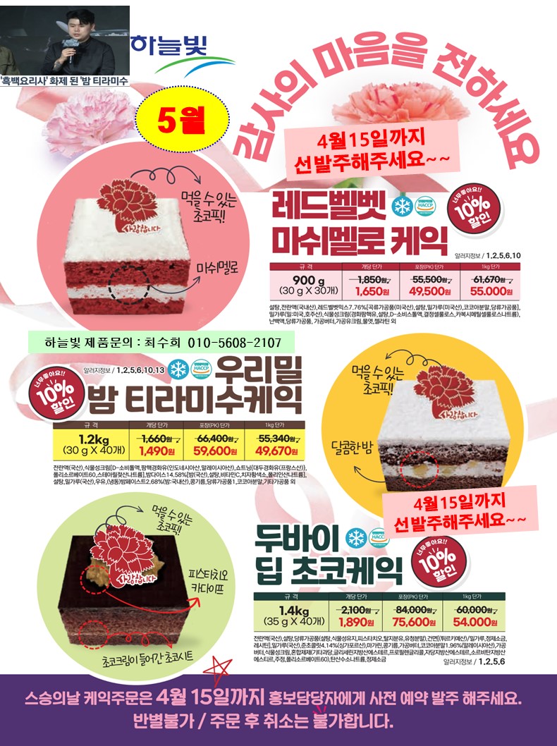 ★☆도래샘푸드==>>❤️❤️◈하늘빛 5월단가표◈❤️❤️(4월15일 선발주)스승의날,단오,누룽지찹쌀꿔바로우