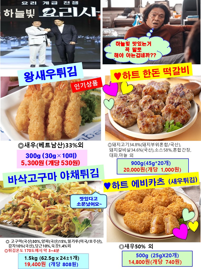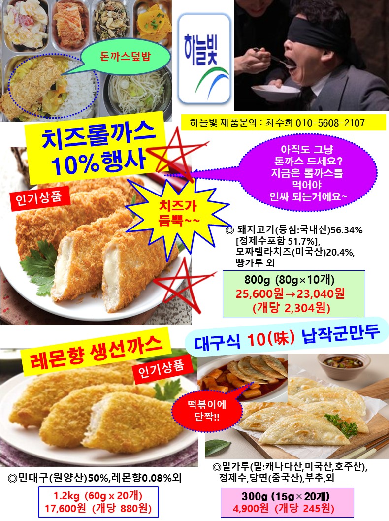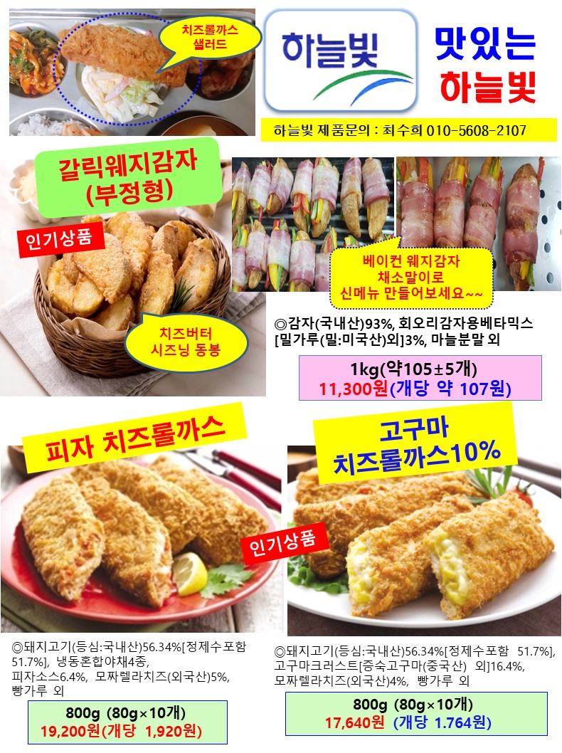 하늘빛 인기폭발 3종: 치즈롤까스,고구마치즈롤까스,갈릭웨지감자