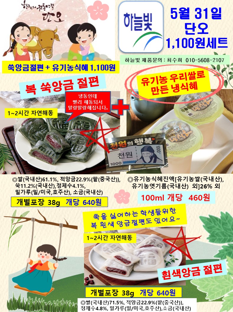 단오추천~~쑥앙금절편 + 유기농식혜 1,100원 세트