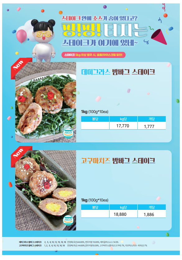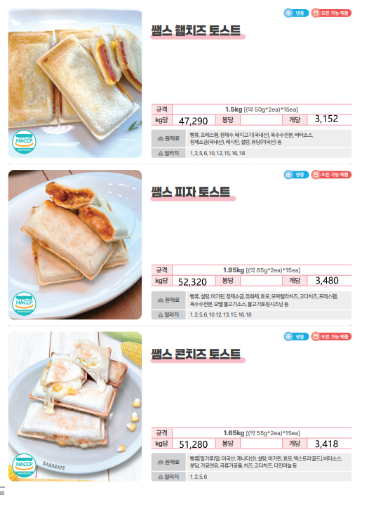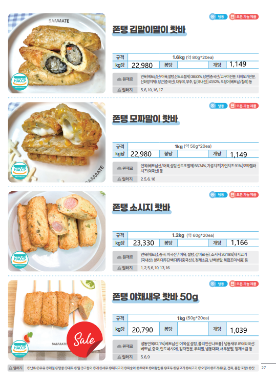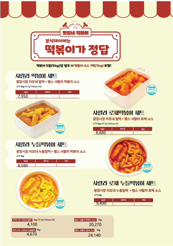 ★★한맥푸드★★ 쌤메이트 (떡볶이,어묵,핫바,호떡,붕어빵,케익,브라우니,등) 1~2월 단가표