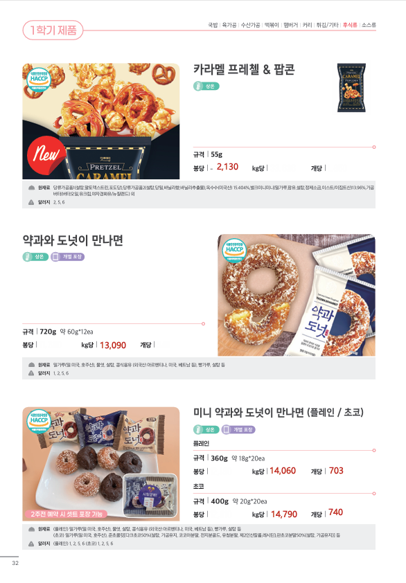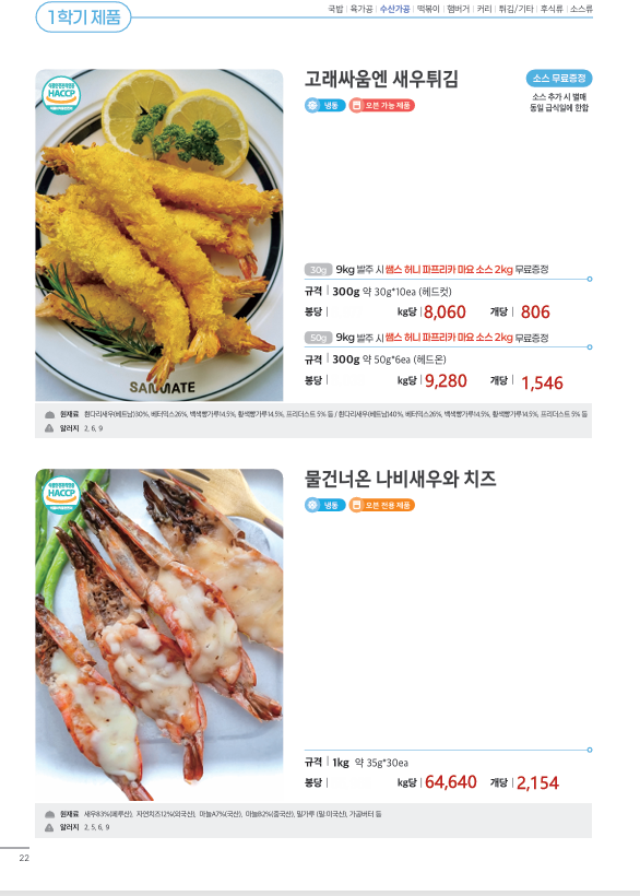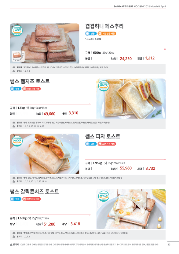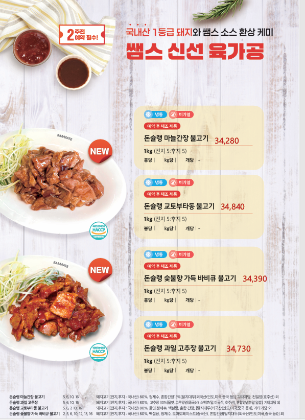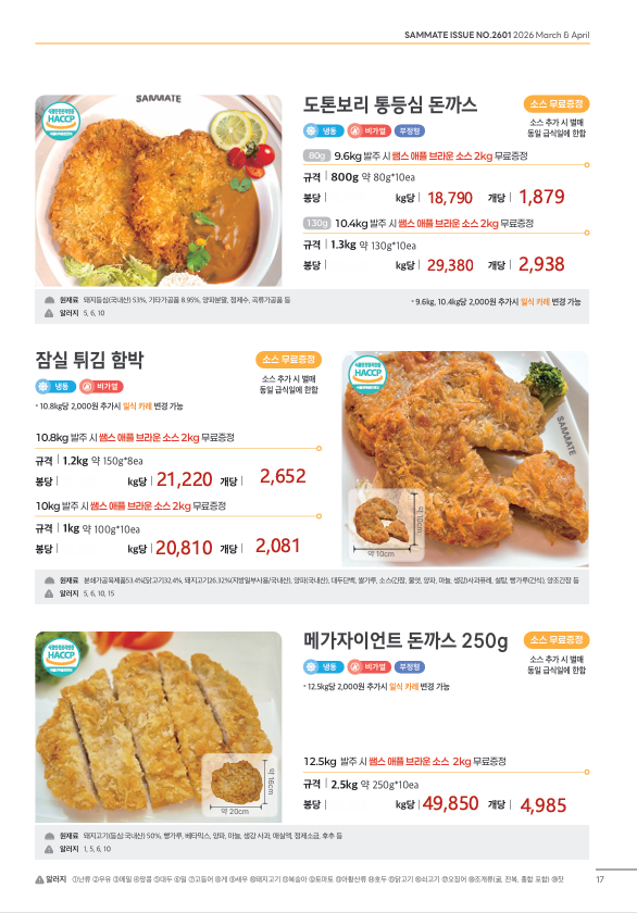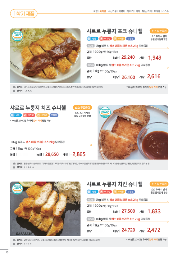 ♣한맥푸드♣ 쌤메이트 (국밥.돈까스.슈니첼,육가공,튀김류,핫바.케이트 등) 새학기 3월 단가표