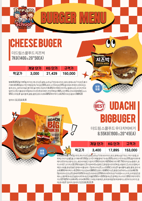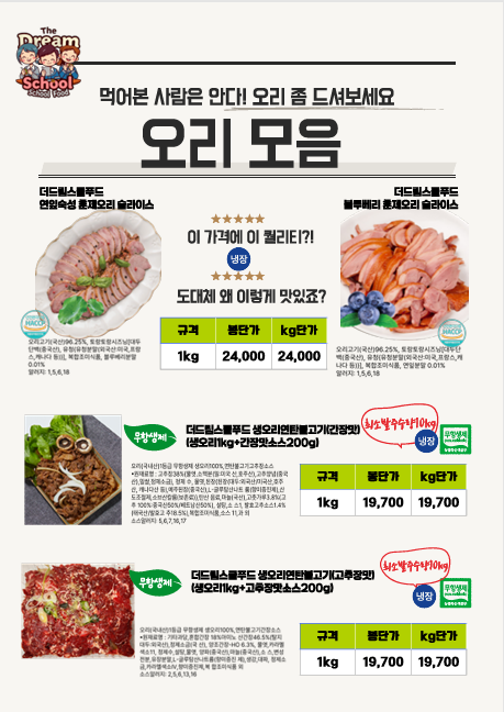 ♣한맥푸드♣ 더드림스쿨푸드 (찢은고기.국밥.오리고기,돈까스.소떡소떡,샌드위치.햄버거.떡갈비.마카롱등) 3월단가표
