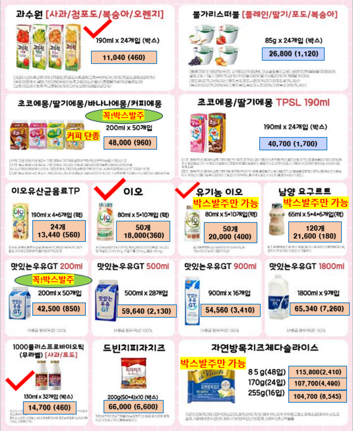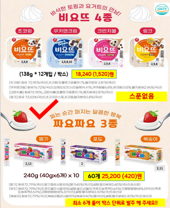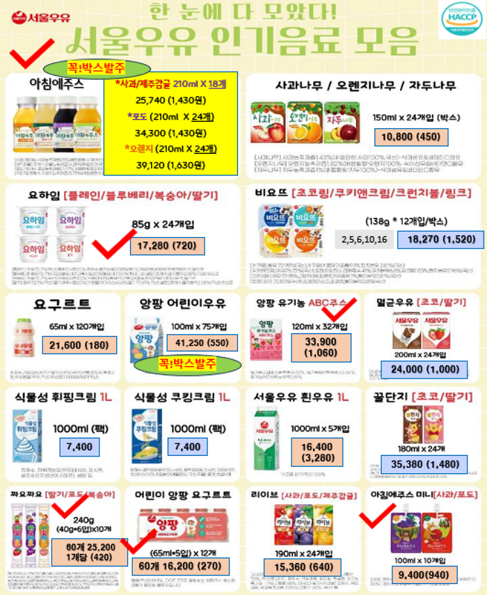 서울우유, 남양유업, 빙그레 , 진짜사과당근주스, 크로플 ,,,