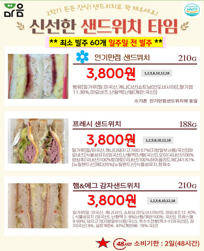 *** 월요일 급식 이용 시 발주 기일 + 2일 정도 여유 있게 발주서 부탁드립니다 (주말관계로)
