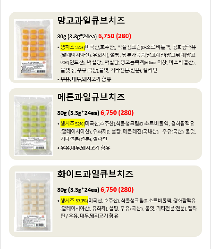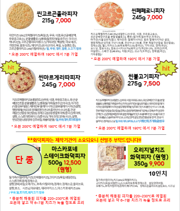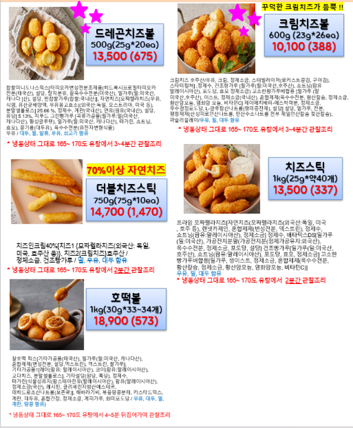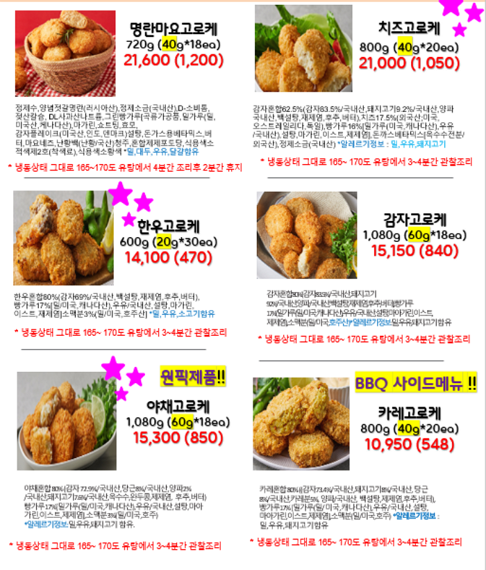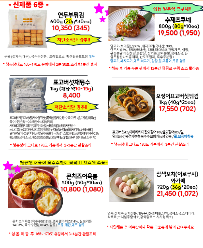 * 고로케, 어묵, 피자, 감자채전, 오징어링, 오징어너겟, 유부당면주머니,,,