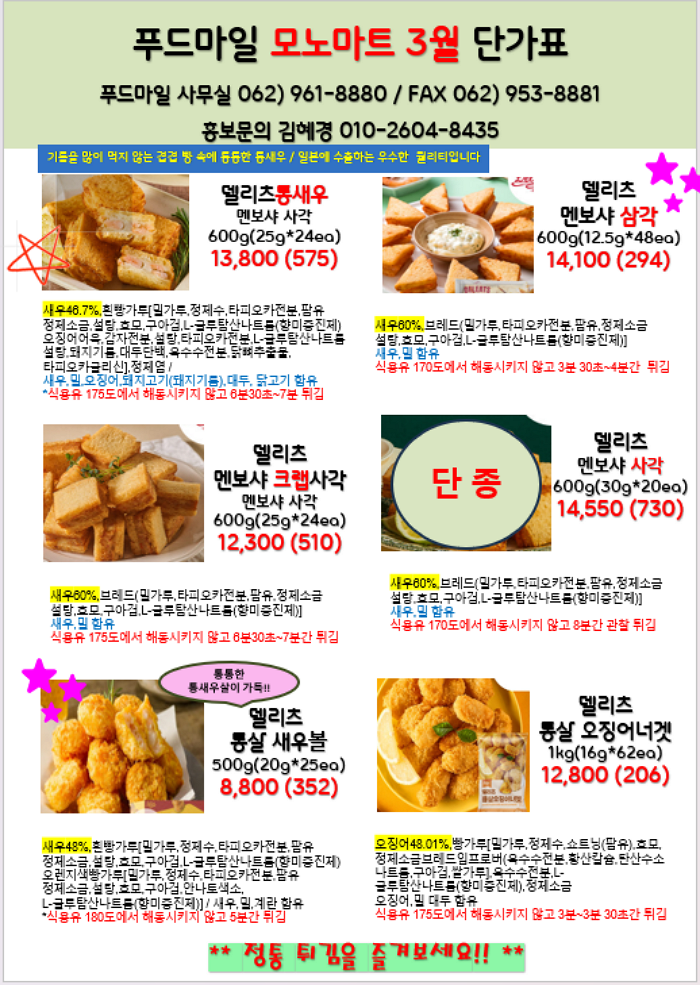 ** 푸드마일 모노마트 3월 단가표입니다 **