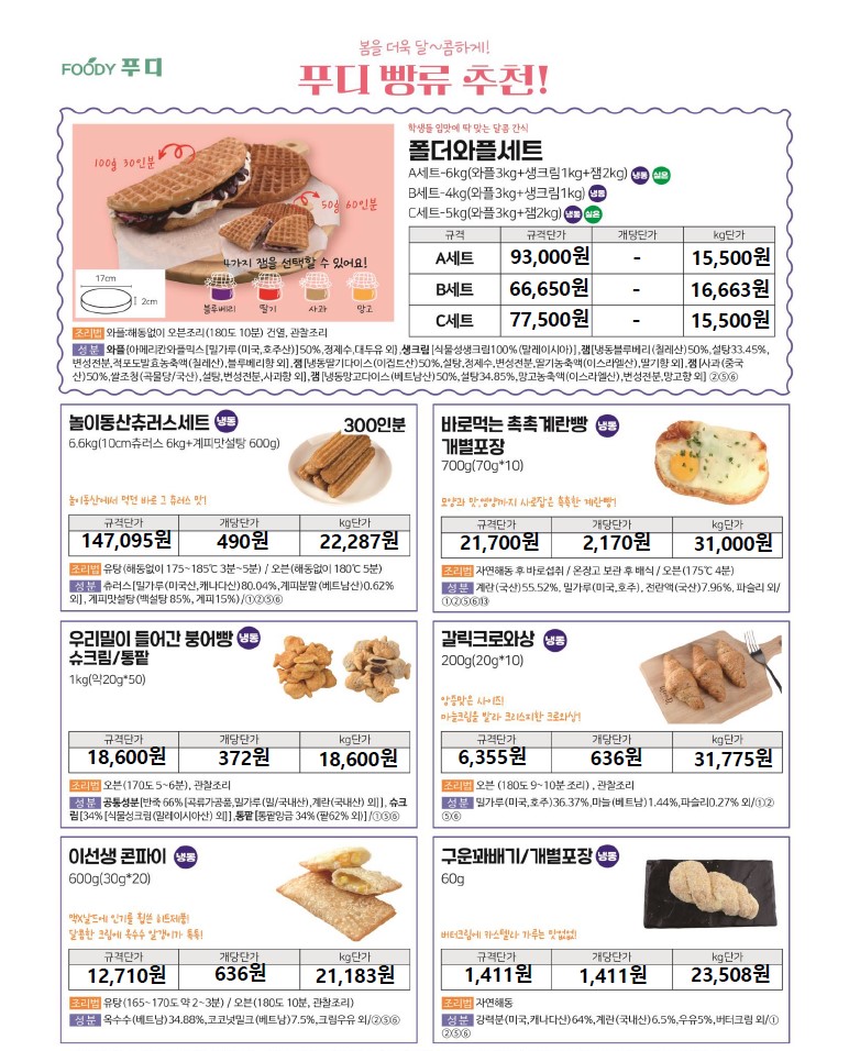 ***SFC푸드맘 아이랑 3월 단가표입니다.(추천단가포함)***