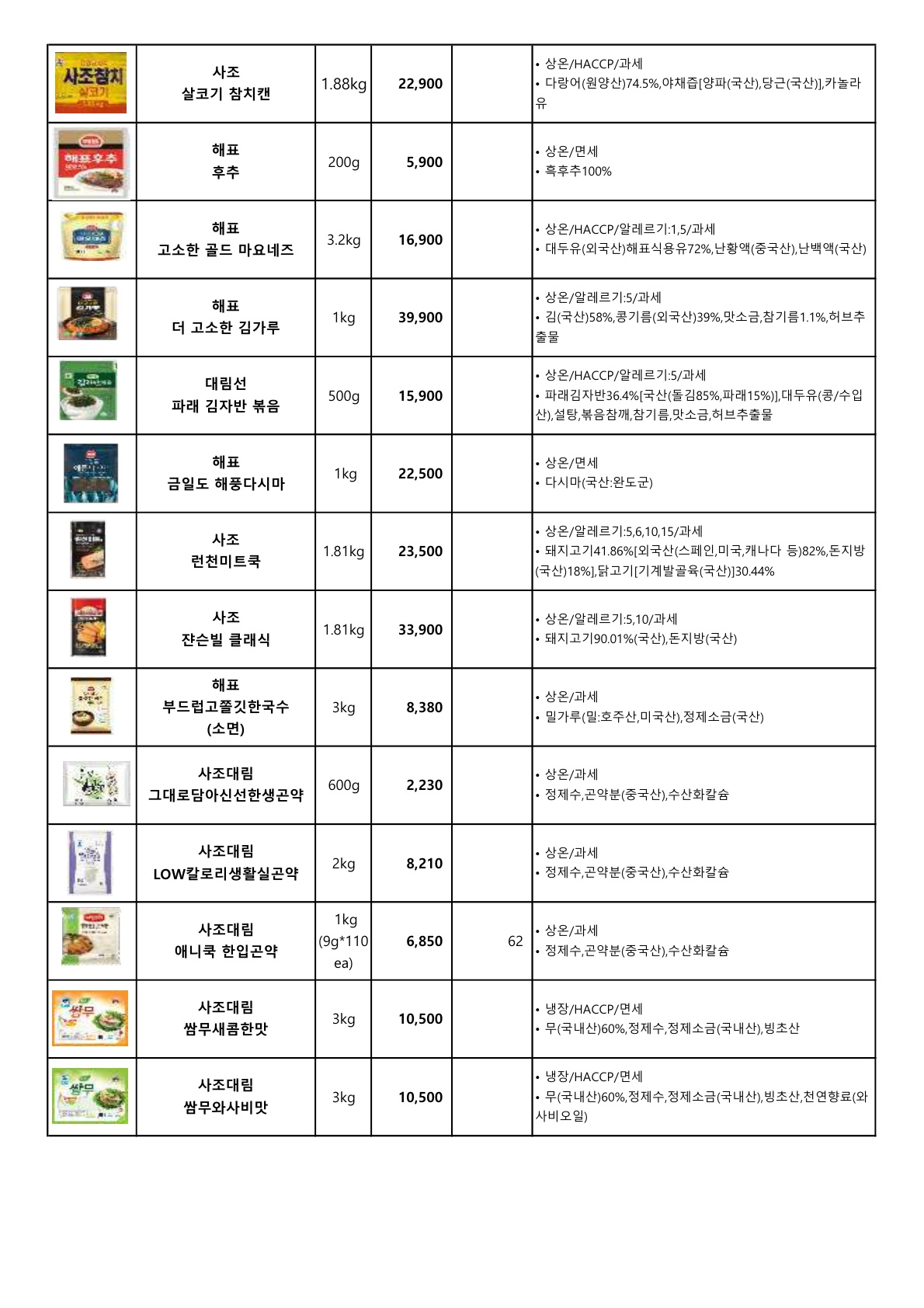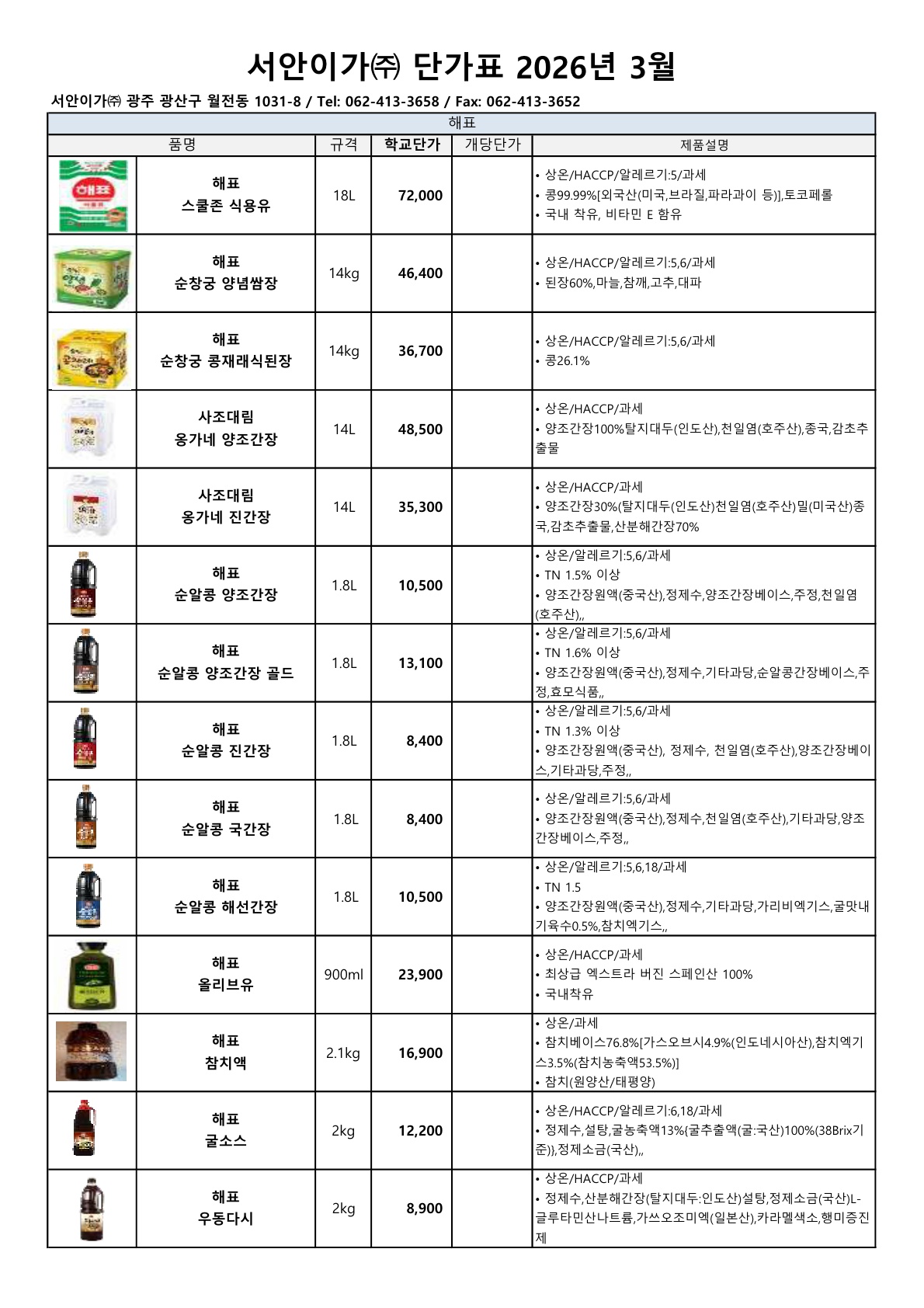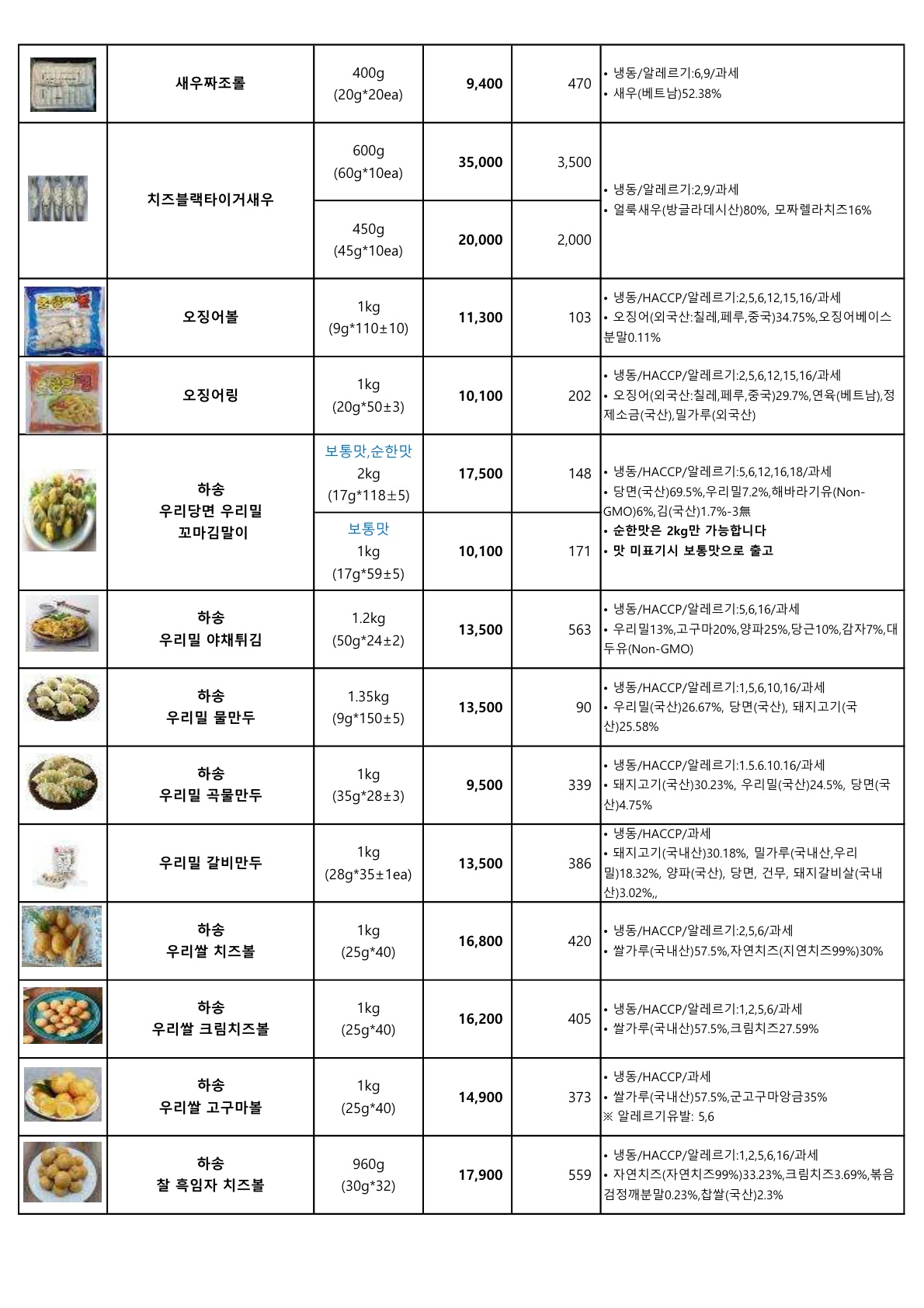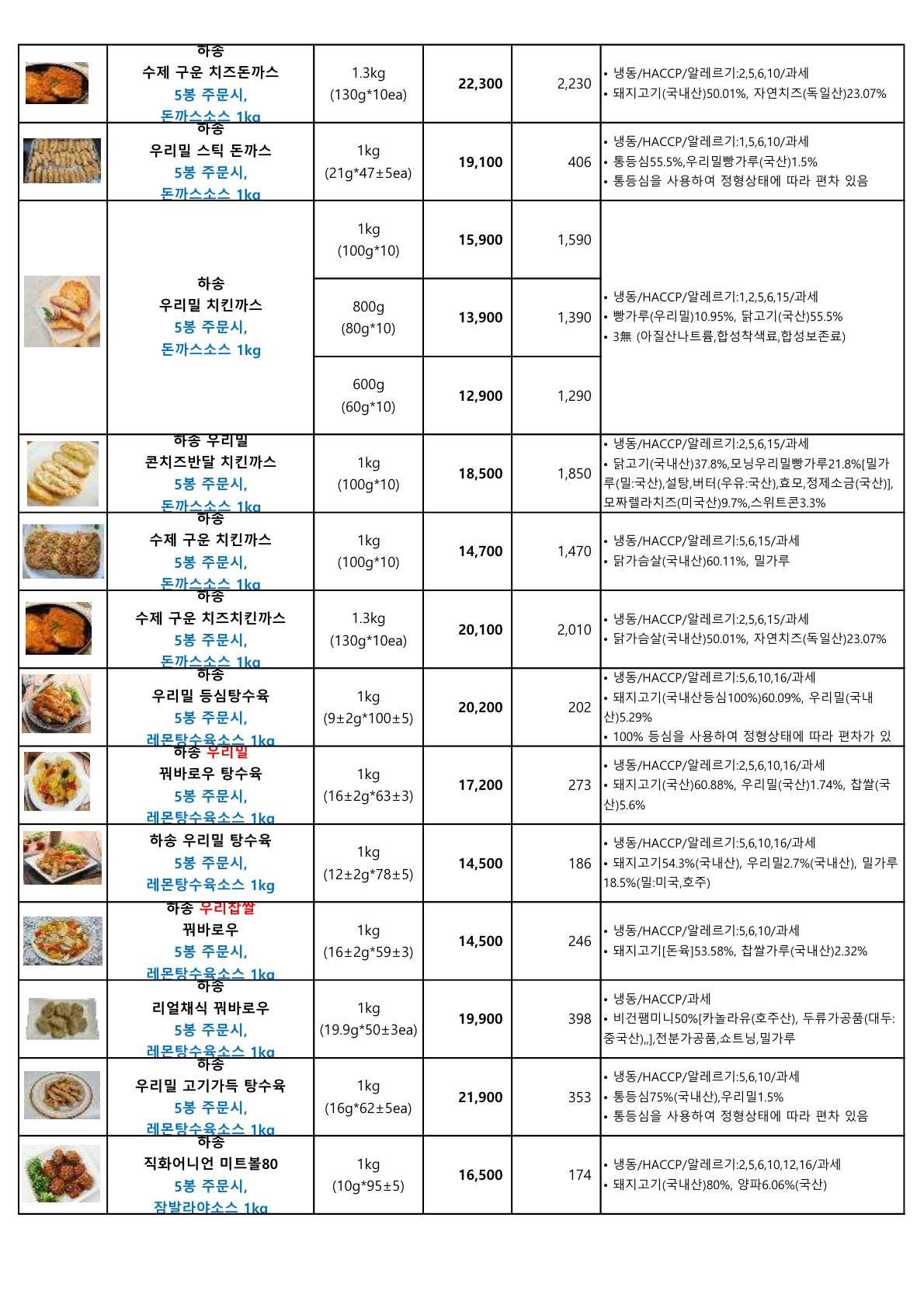 ▶▷ 서안이가 3월 (하송, 사조대림) 단가표