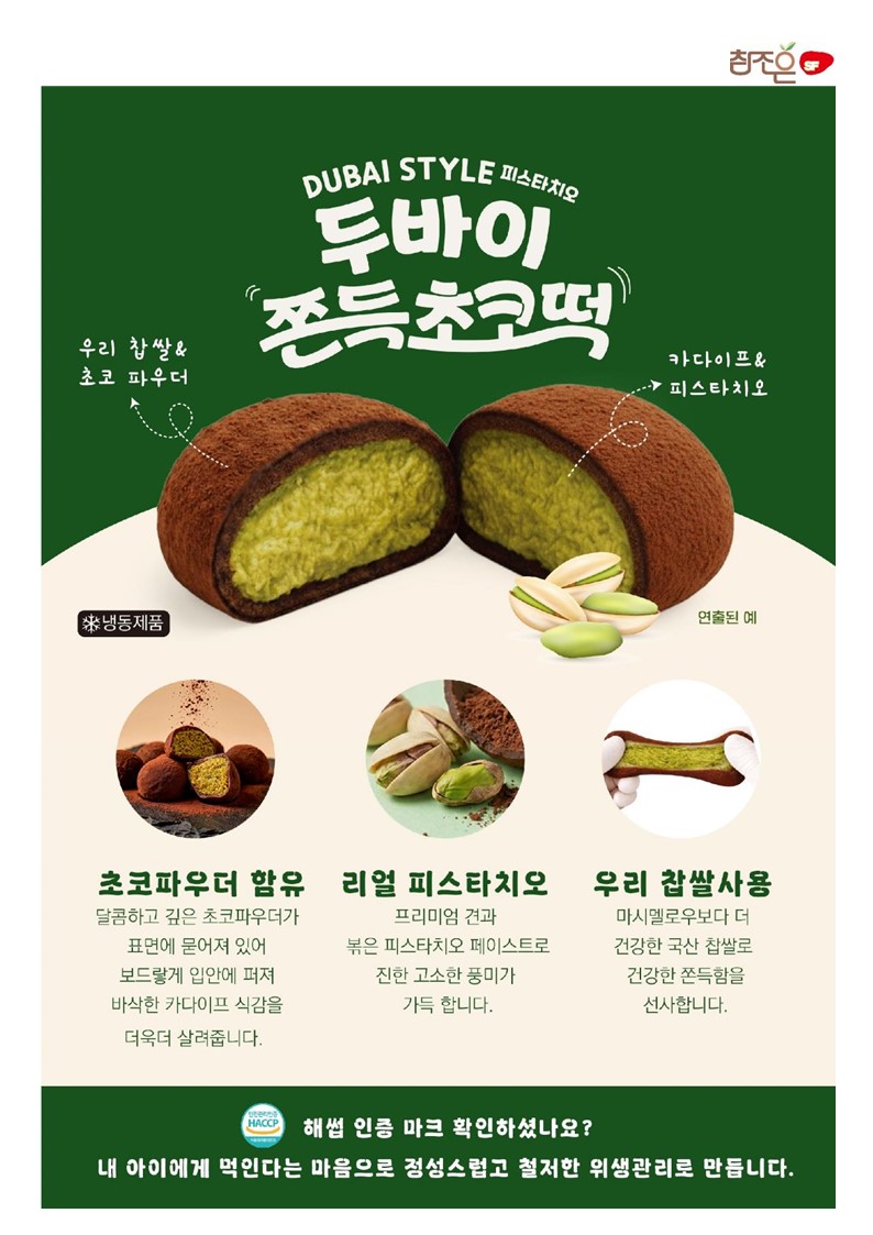 파스타치오 스프레드와 카다이프가 가득한 두바이쫀득초코떡 놓치지마세요.