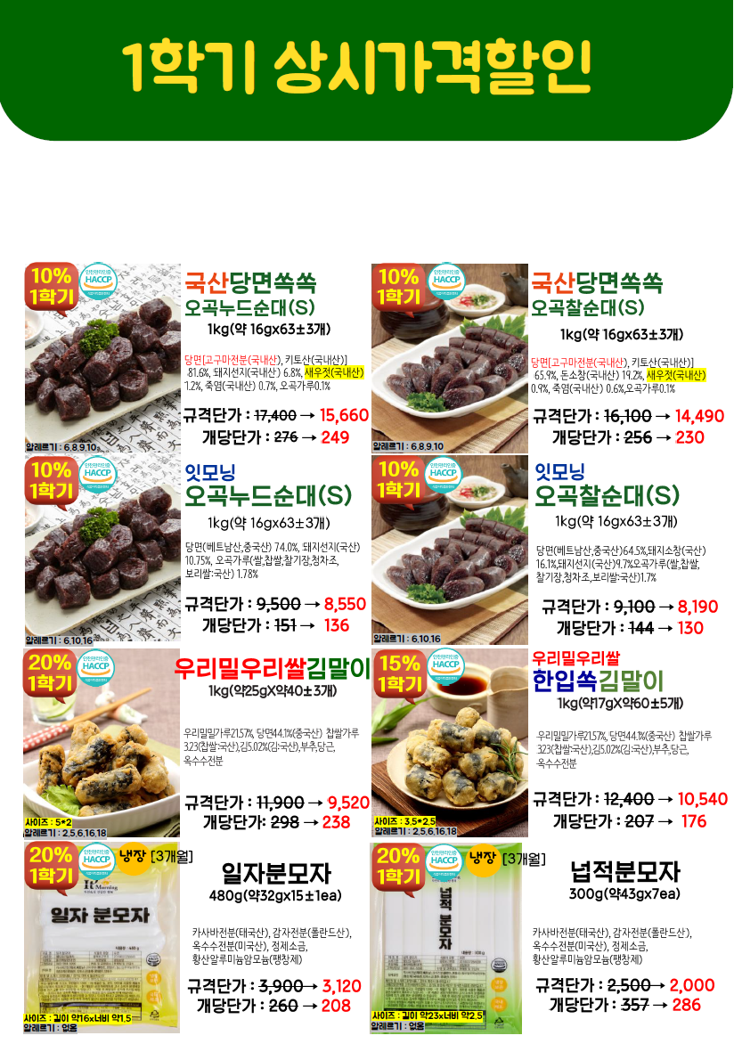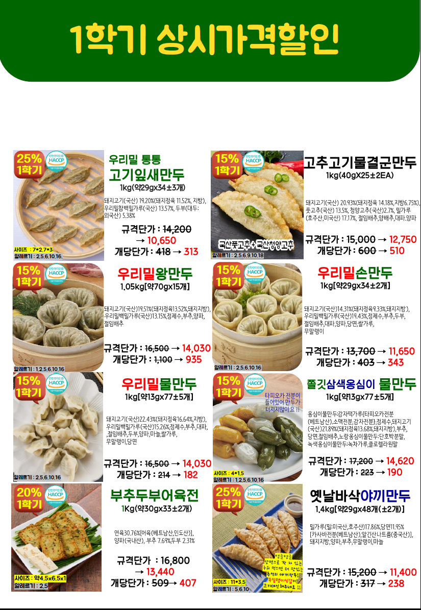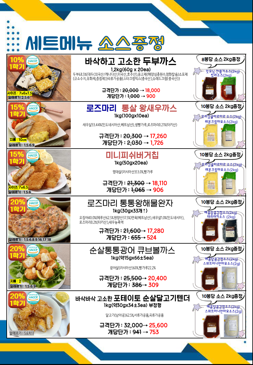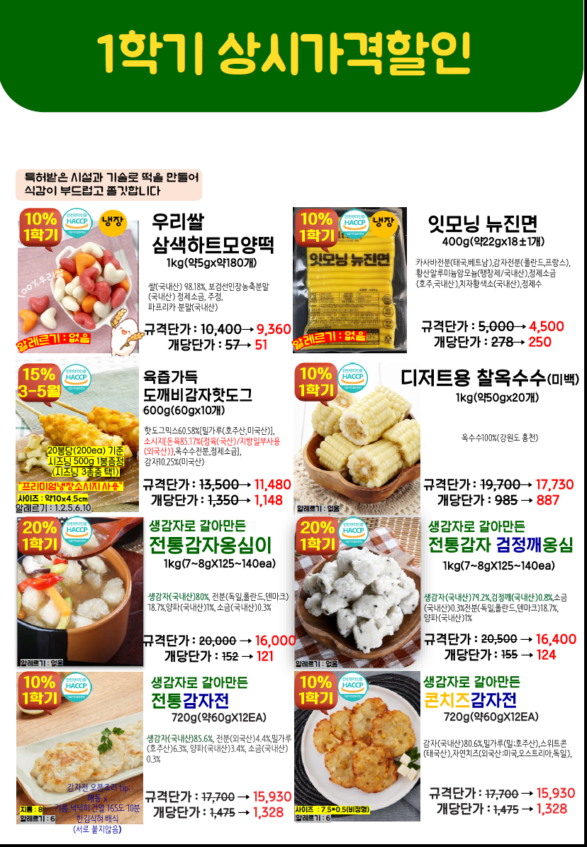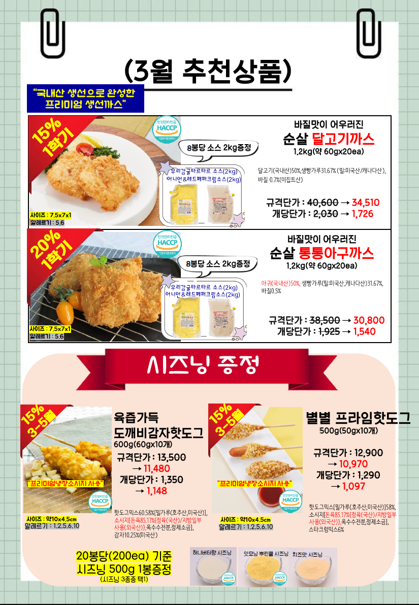 ◈≪≪도래샘푸드≫≫❤️▶[천년풍미/잇모닝]◀❤️26.03월 총단가표입니다(달려라포기베리케이크,정월대보름넛츠,라이스팝우리바다수제오란다텐더,라이스팝포테이토한입피쉬볼,오브닝프라잉리얼블럭모짜치즈돈까스,에비카츠,블랙타이거치즈쉬림프외