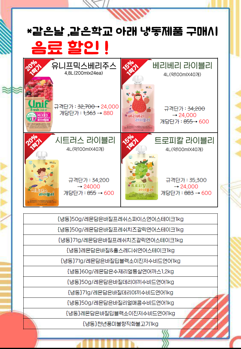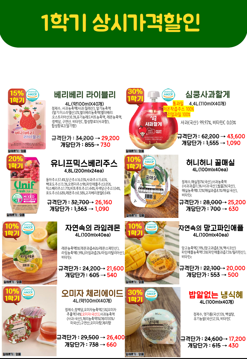 제품문의: 도래샘푸드 576-8007 / 정현화팀장 010-5133-0798