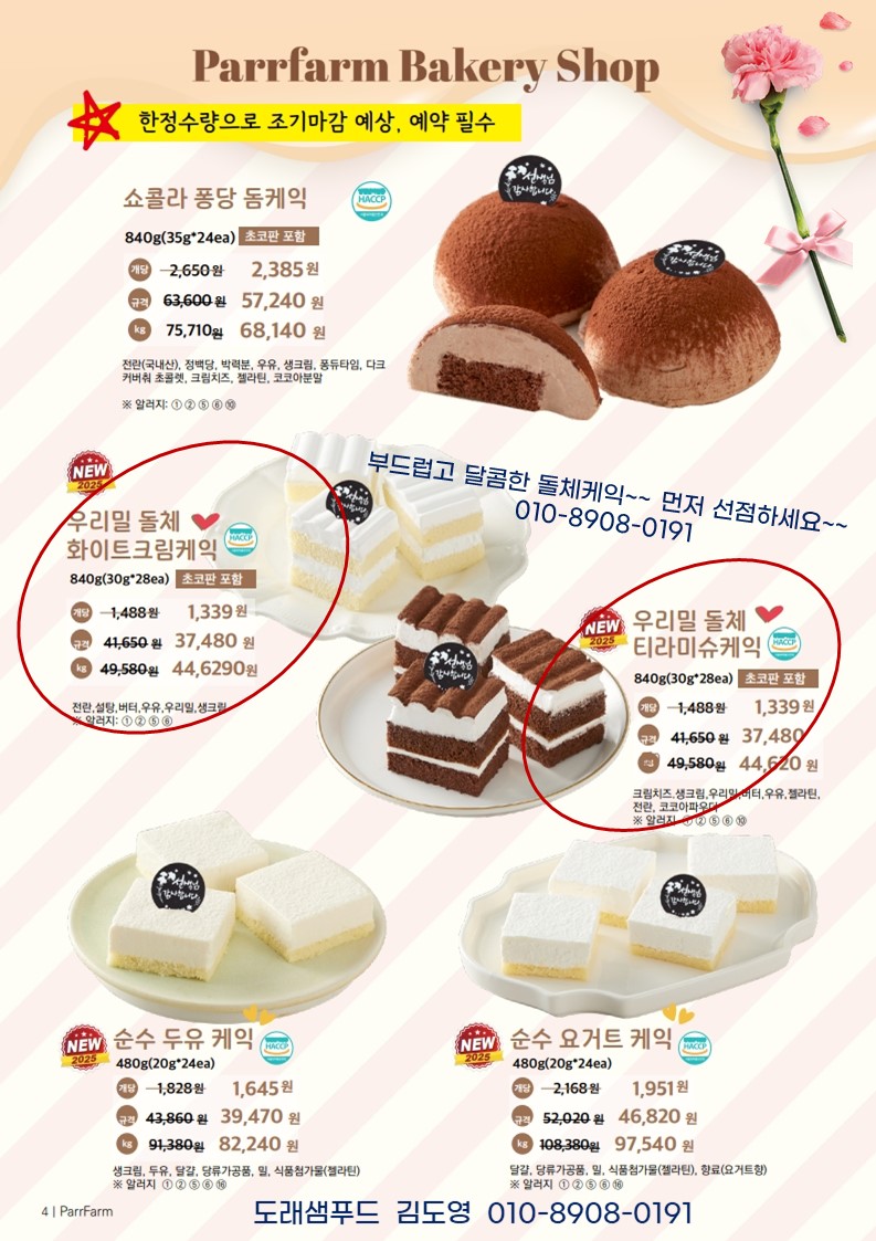 케익 한정수량 품목별 조기마감될 수 있어요~~꼭 체크하시게요~`