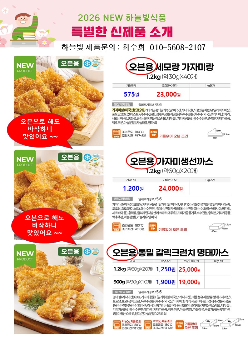 신제품 ※오븐용 가자미생선까스 60g (개당 1,200원)