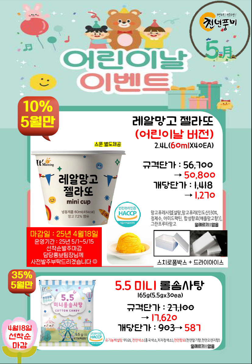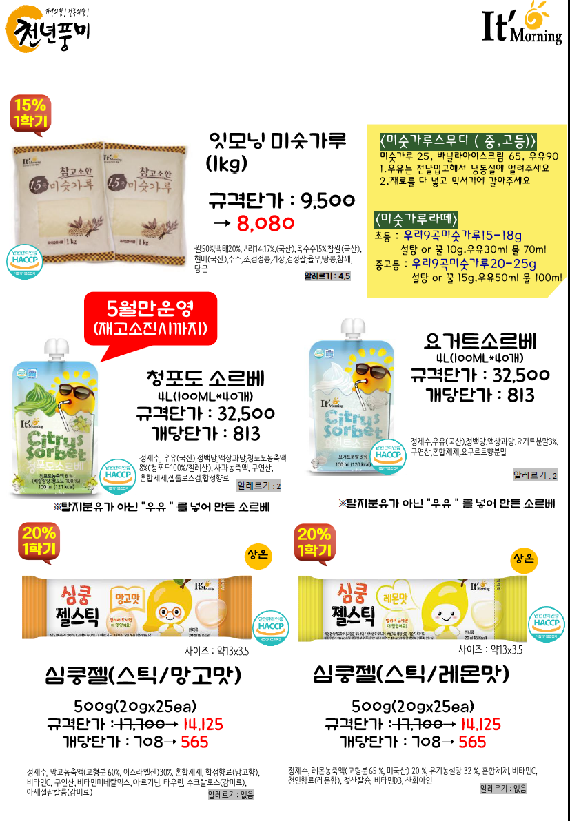 ◈≪≪도래샘푸드≫≫❤️▶[천년풍미/잇모닝]◀❤️5월 전체단가표(특별이벤트 선발주-스승의날(러브라즈베리쥬빌레),어린이날(레알망고젤라또),단오(무주수리취꿀떡),바다의날,젤라또,전복낙지영양솥밥