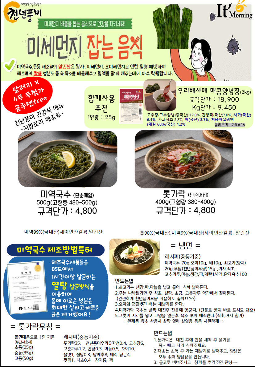 안녕하세요? 천년풍미/잇모닝 정현화입니다.