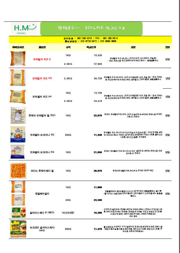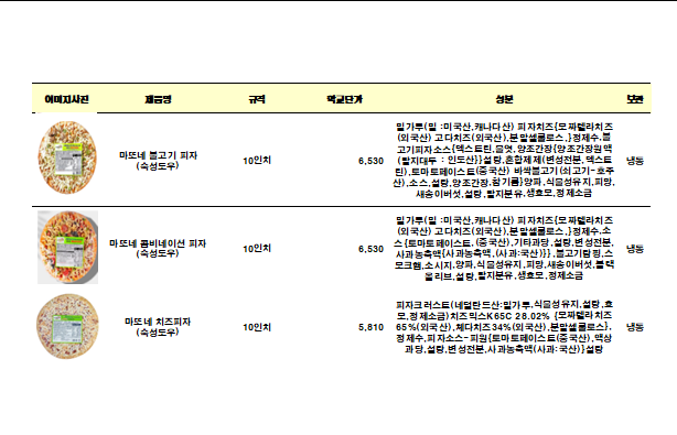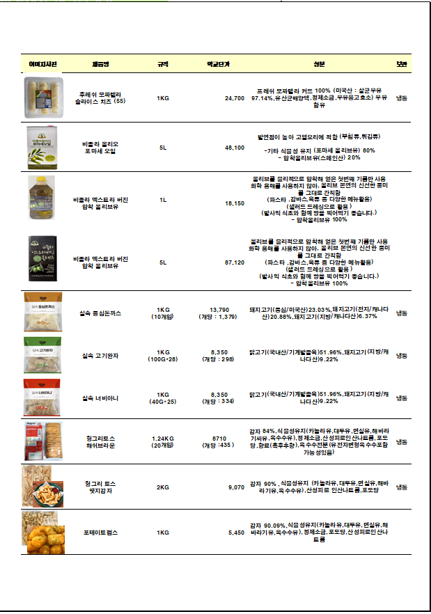 ▶한맥푸드◀ 코다노(치즈,올리브유,돈까스,소스,.피자도우) 4월 단가입니다