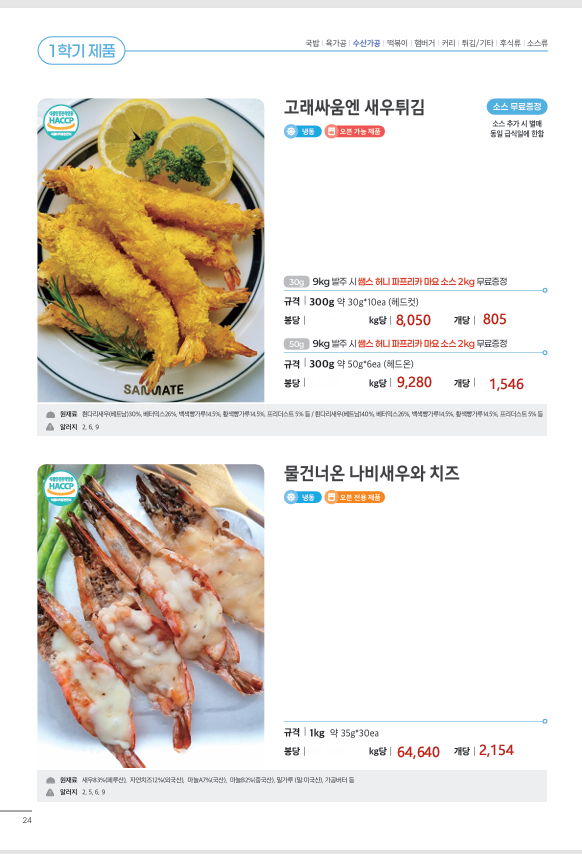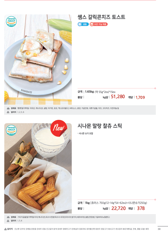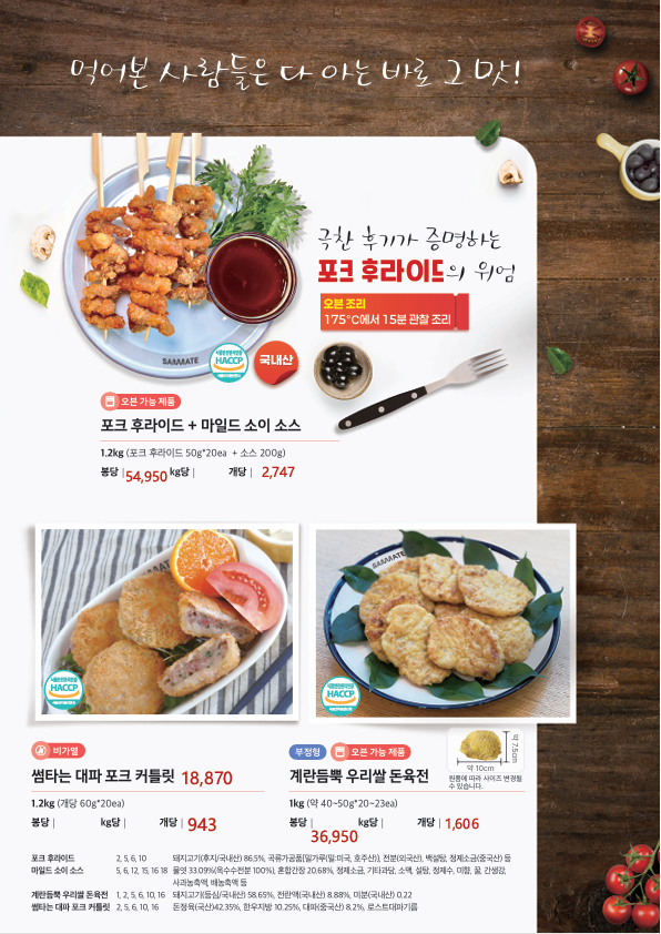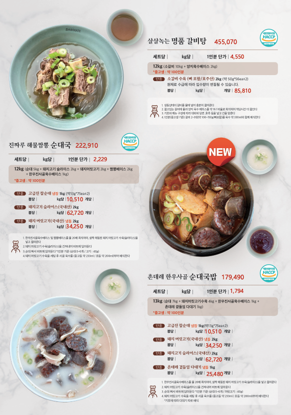 ▶한맥푸드◀ 쌤메이트(국밥,햄버거,튀김류,핫바,연어스테이크,컵케익,샌드위치)4월 단가입니다