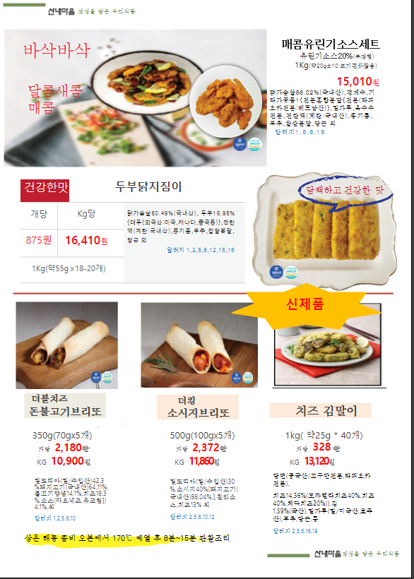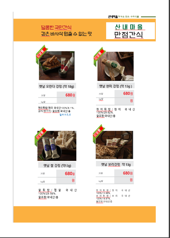 ※송곡푸드※ 산내마을 (국밥,닭꼬치,유린기,돈까스,두부닭지짐이,보리강정,마카롱,음료) 4월 단가표입니다