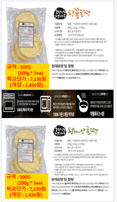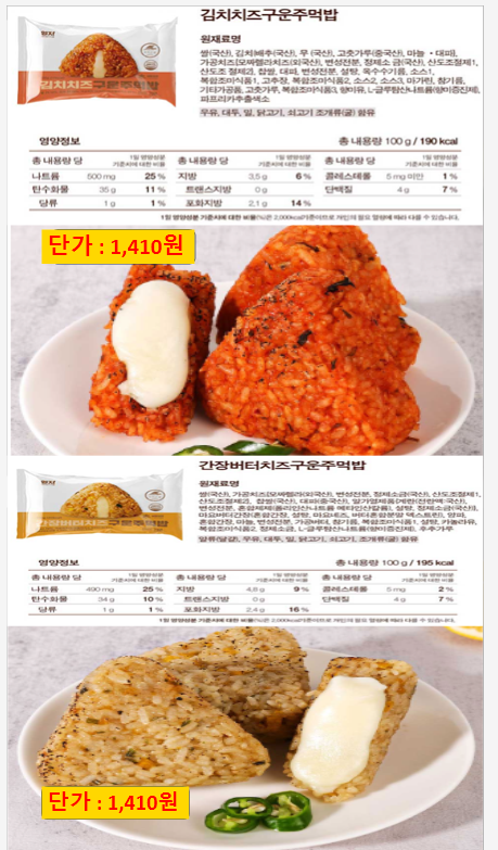 ※송곡푸드※ 세진푸드(오리지널,바나나,블루베리초코파이,회오리감자,벌집고구마,구운주먹밥,등등) 4월 단가표입니다