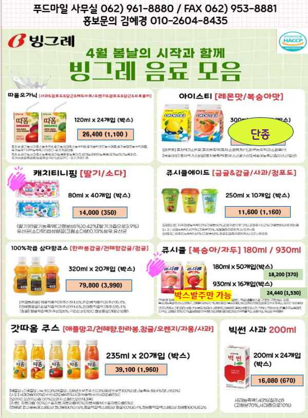 ♥♥♥ 푸드마일 마음 4월 단가표 입니다 ♥♥♥
