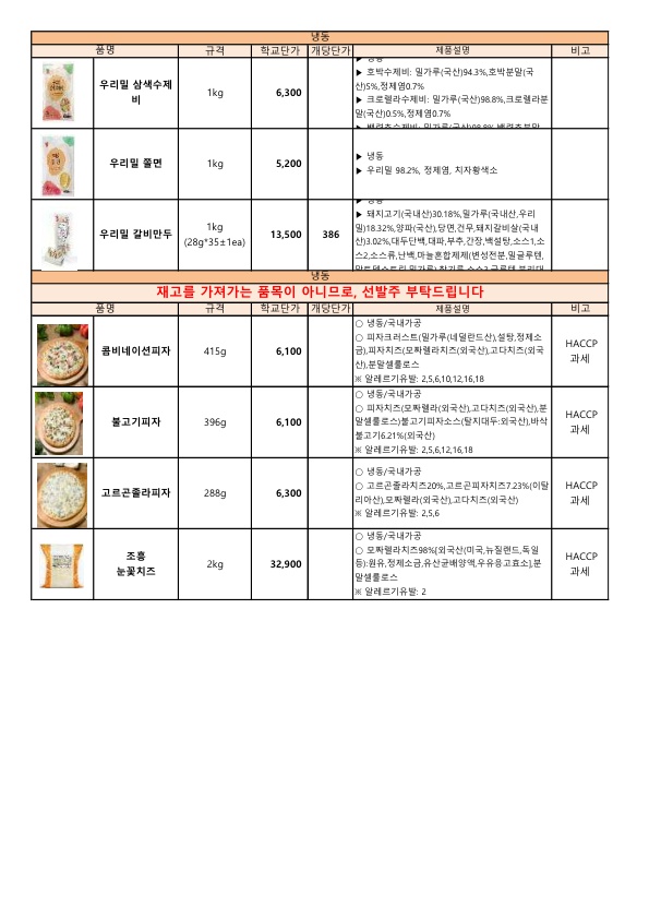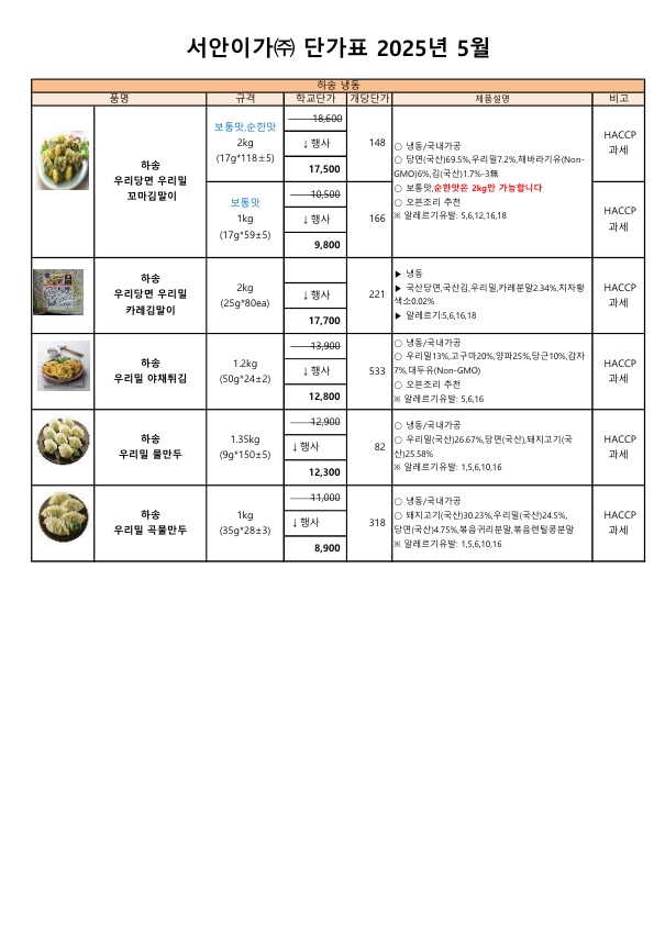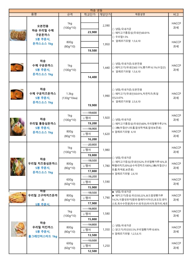 사조대림 우동다시, 하송 우리당면 우리밀 카레김말이, 하송 수제 구운돈까스, 하송 수제 구운치즈돈까스,
