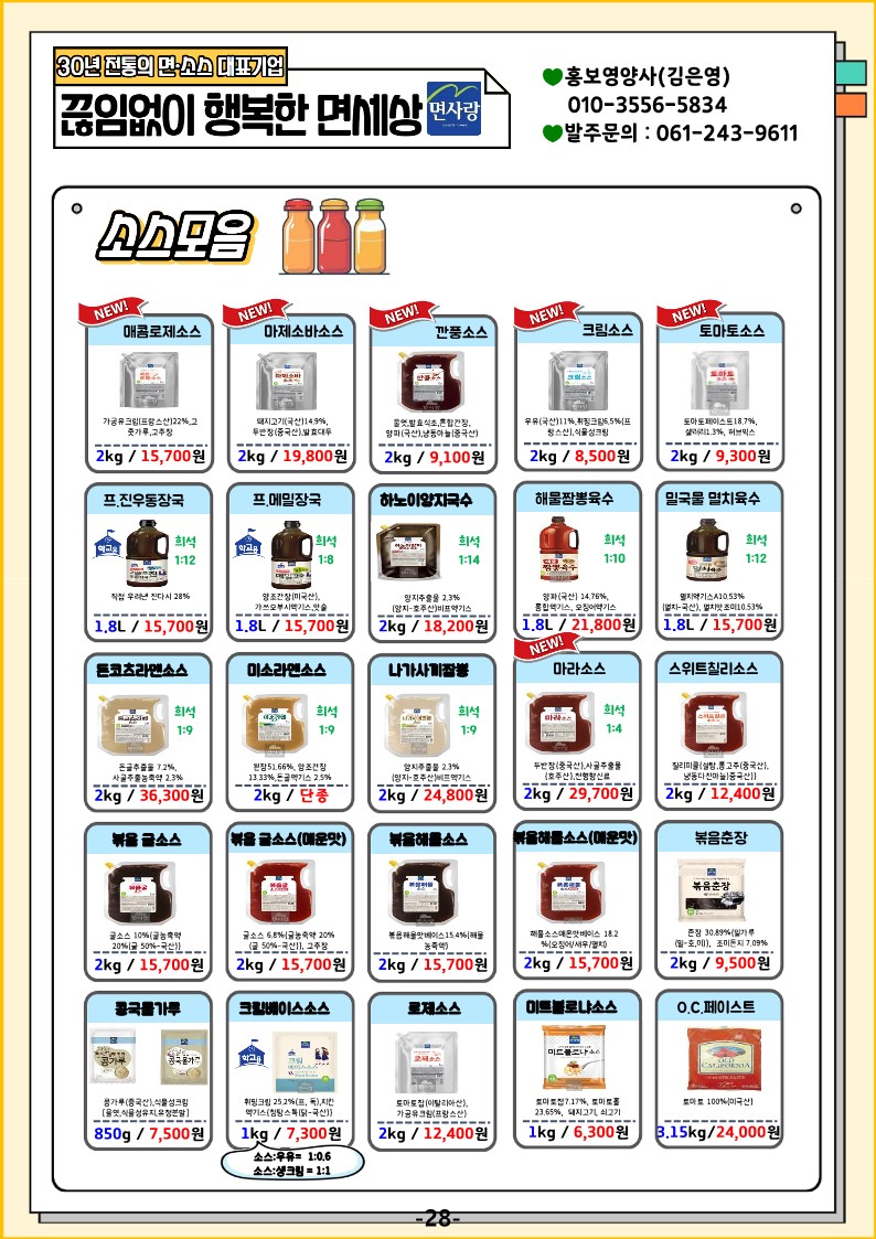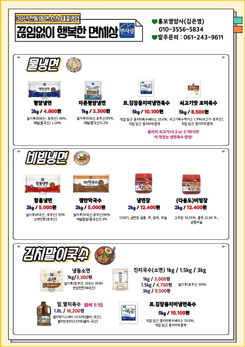 면사랑 단가표와 레시피북을 올려드리오니 맛있는 식단에 참고부탁드립니다!!