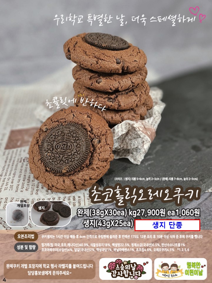 푸드스토리 초코홀릭오레오쿠키(생지), 오리지널꿀빵, 육개장 단종 공지드립니다.