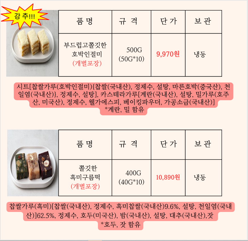 ♠♠송곡푸드♠♠창억(호박인절미,꿀떡) 5월단가입니다♠♠♠
