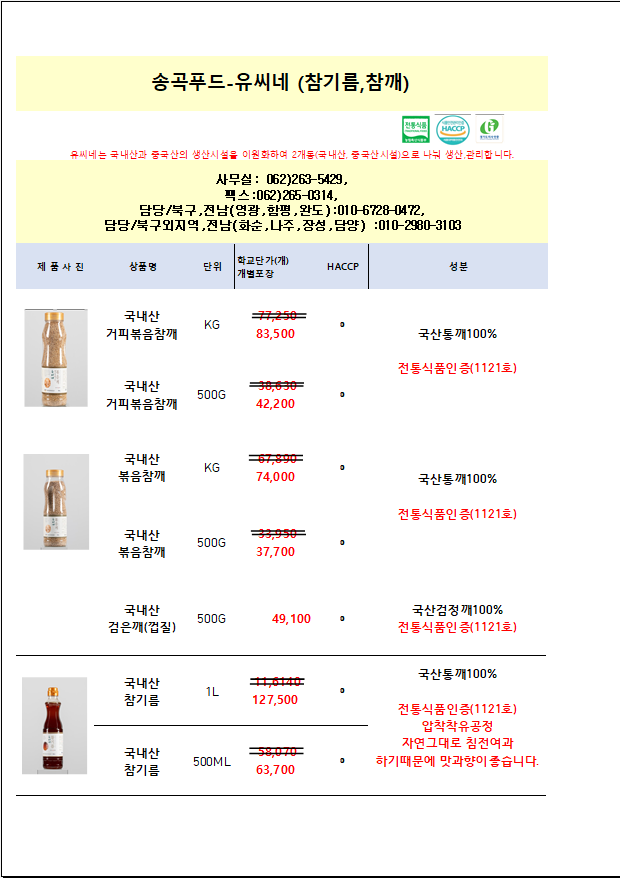 ●●송곡푸드)) 유씨네 (참깨, 참기름,들기름) 6월단가표 ●●