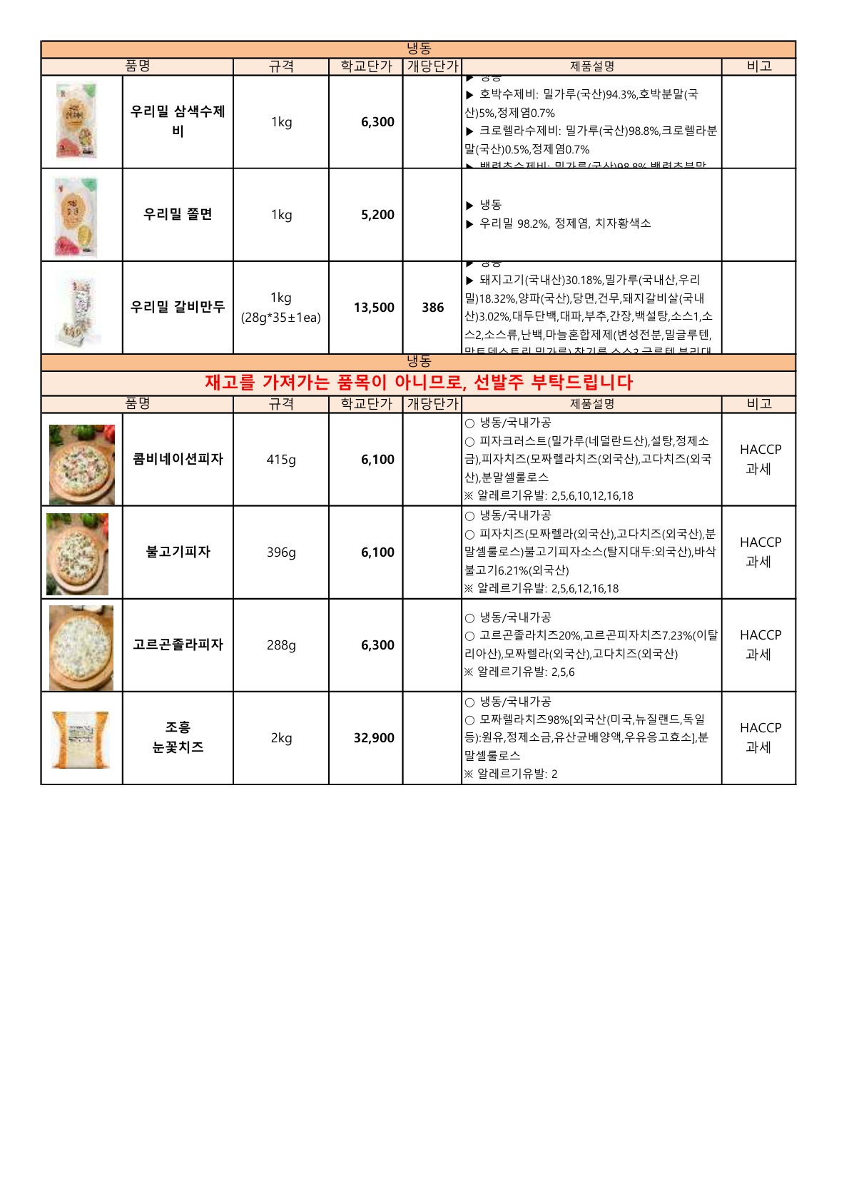 사조대림 우동다시, 하송 우리당면 우리밀 카레김말이, 하송 수제 구운돈까스, 하송 수제 구운치즈돈까스,