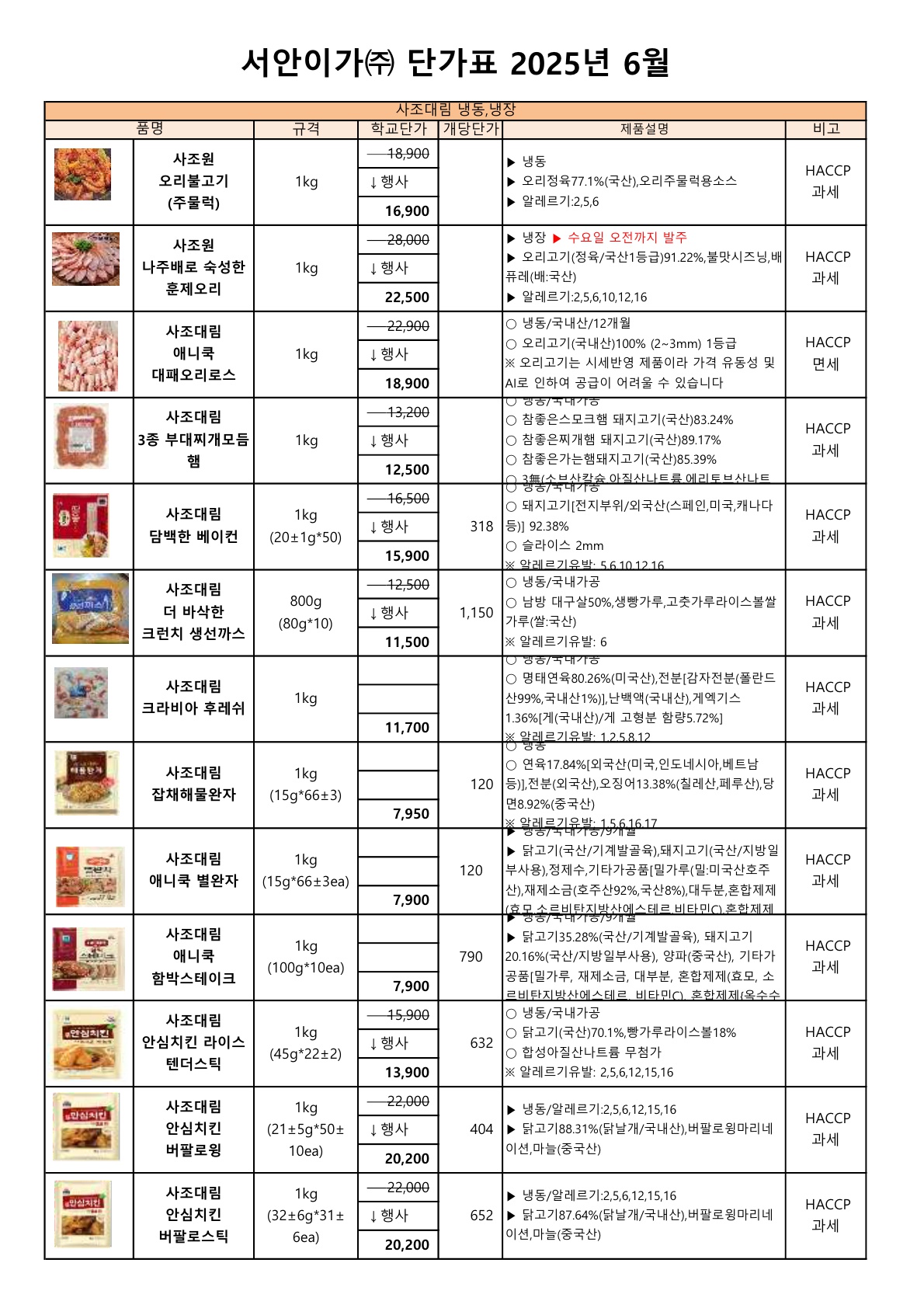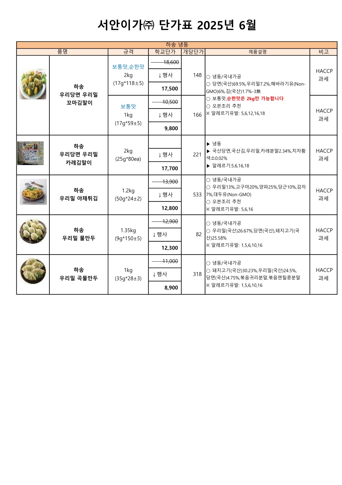 ▶▷ 서안이가(하송) 6월 전체단가표