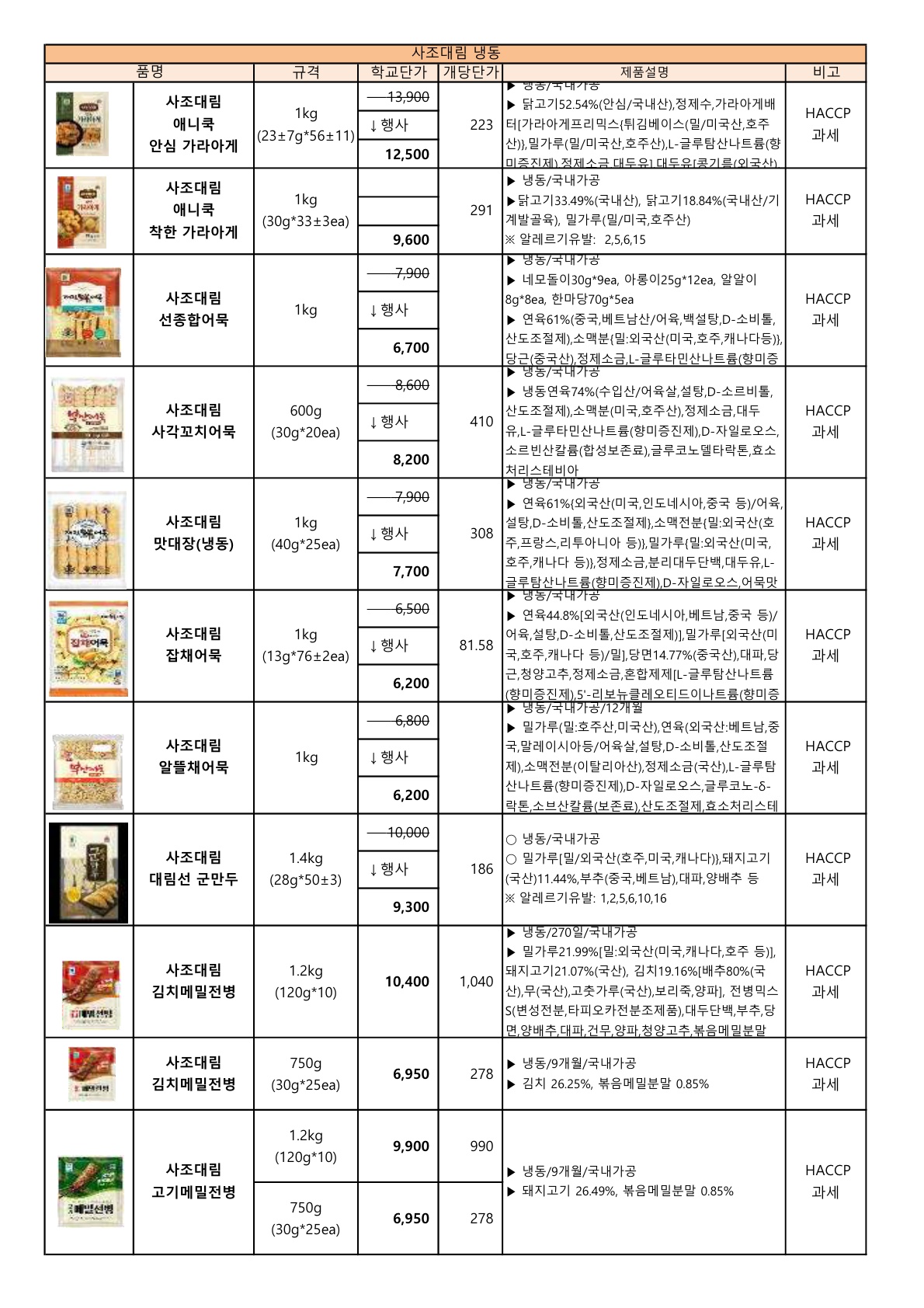 ▶▷하송(서안이가) 6월【사조원 오리불고기,훈제오리】【사조대림 냉장,냉동】(생선까스,만두,전병,텐더,부대햄,베이컨,크라비아,…