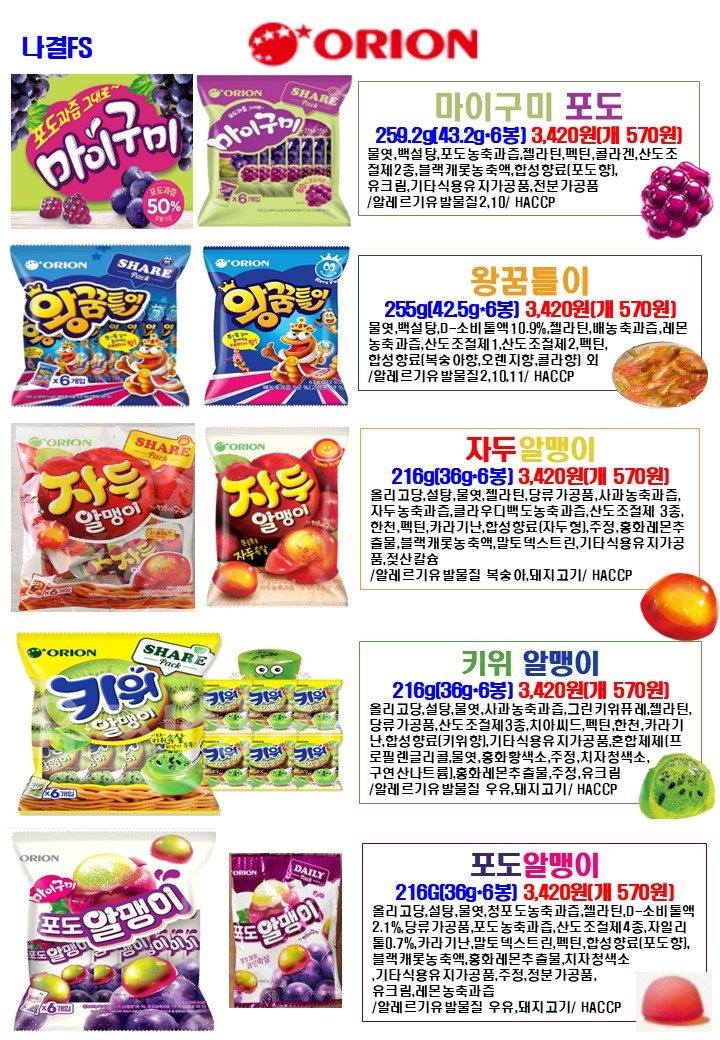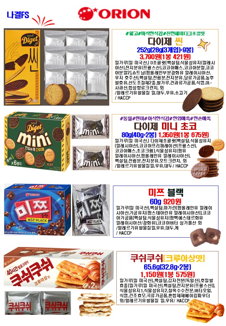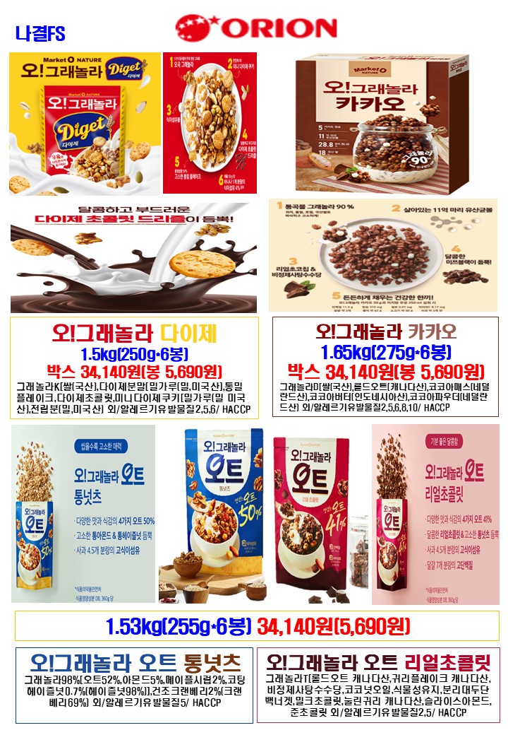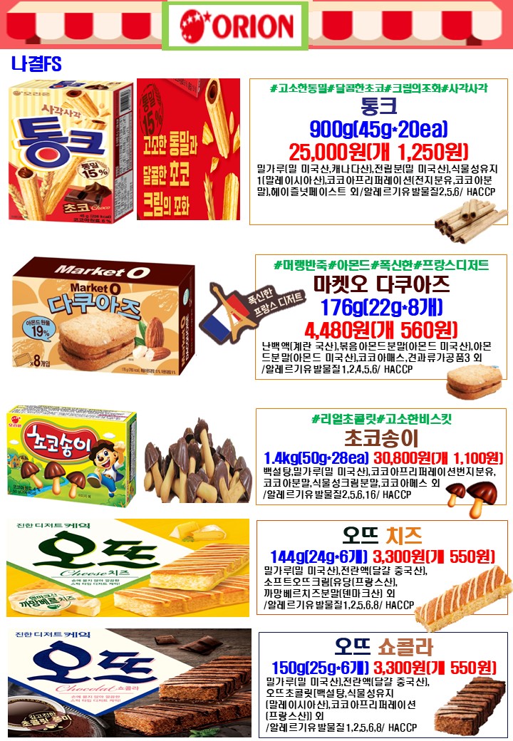 나결fs 25년 6월 푸드스토리,싱싱플러스,착한애,제이브라운,오리온,학교간닭,천일식품,루토사,목우촌,한국전통식품,가보팜스,명인쌀조청,토리식품,우리밀농협,다온매실,명랑핫도그,하이포크(가족사랑) 행사지(리플릿) 안내드립니다.