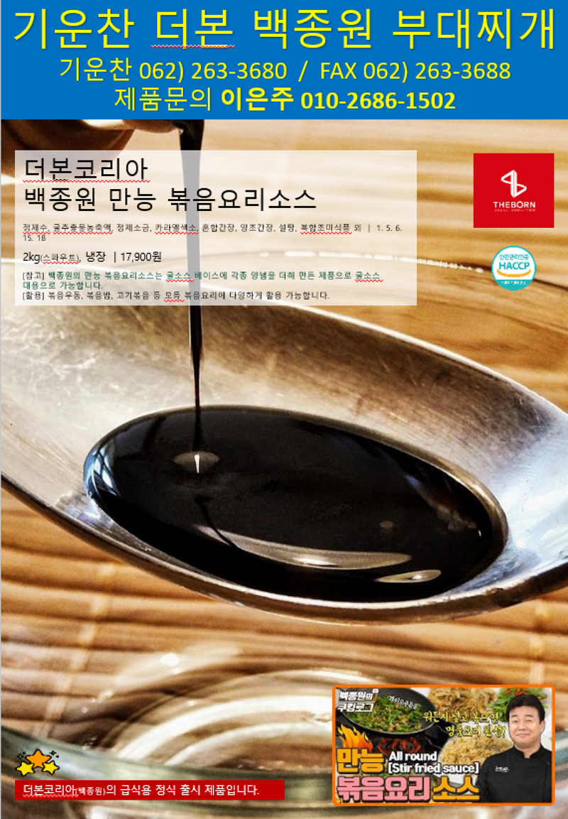 기운찬 더본 백종원 1학기 단가표 ♠ 백종원부대찌개(빽쿡부대찌개), 백종원의 볶음요리만능소스 ♠
