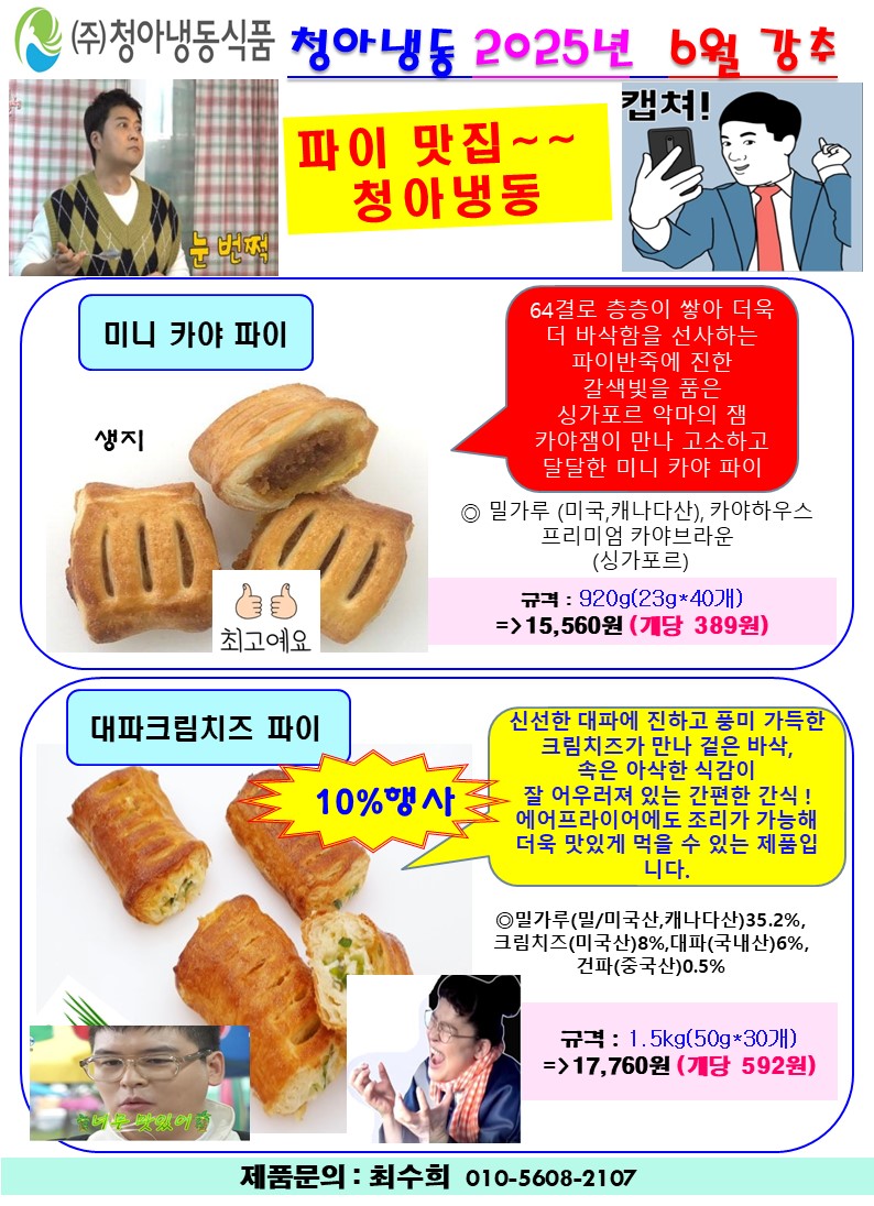 ★☆ 도래샘푸드===>>❤️❤️♠청아냉동♠❤️❤️ 6월행사 및 단가표 (애플잼쿠키,대파크림치즈파이,씨앗호떡파이)