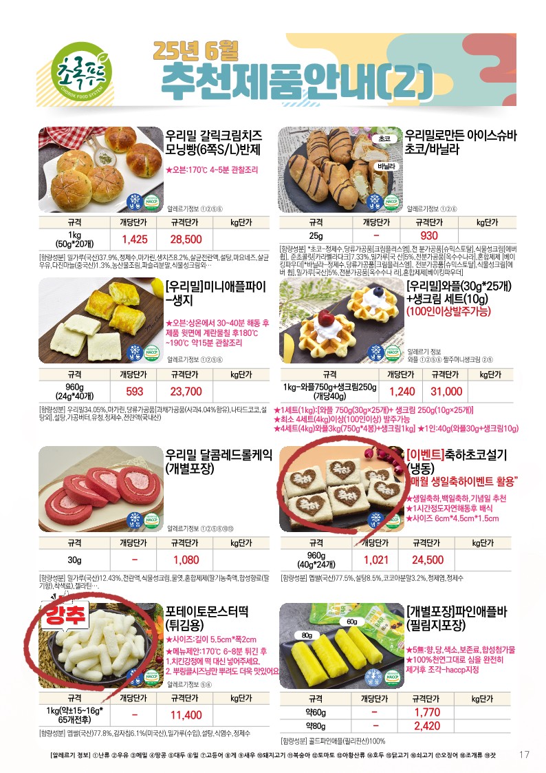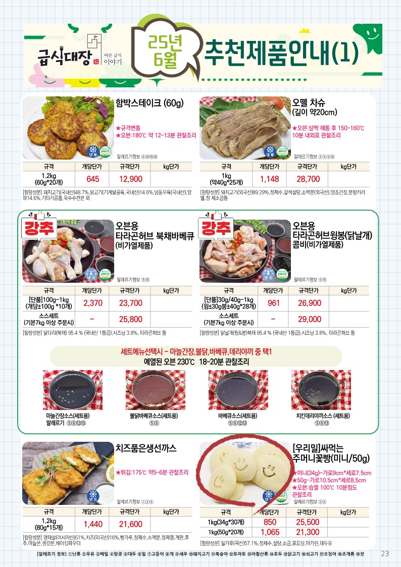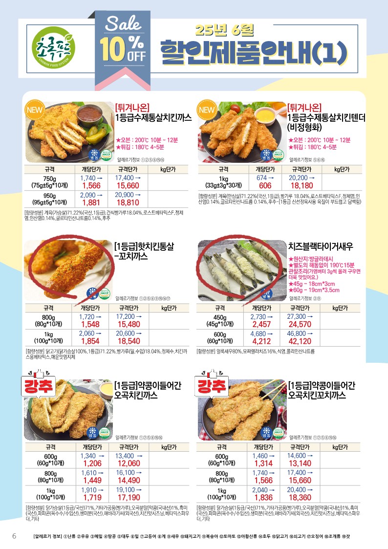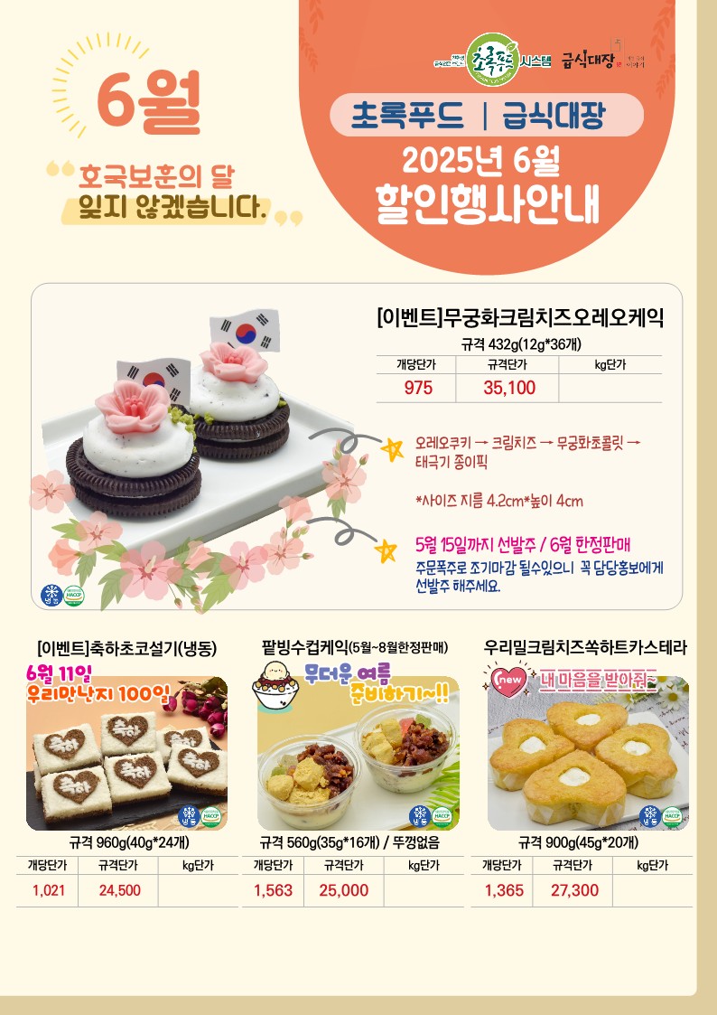 ✿✿[동원에프엔에프]초록푸드&급식대장 6월 단가표✿✿