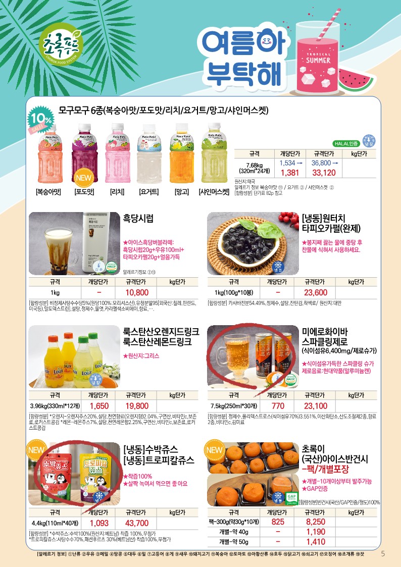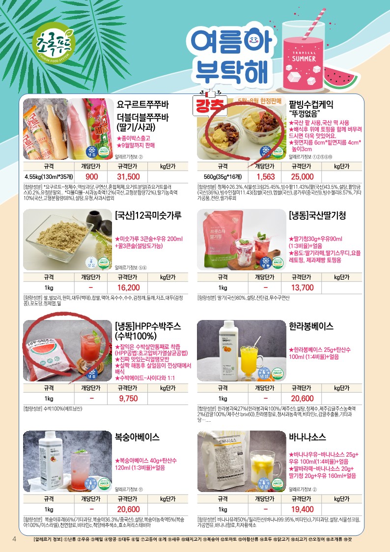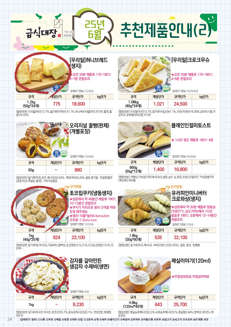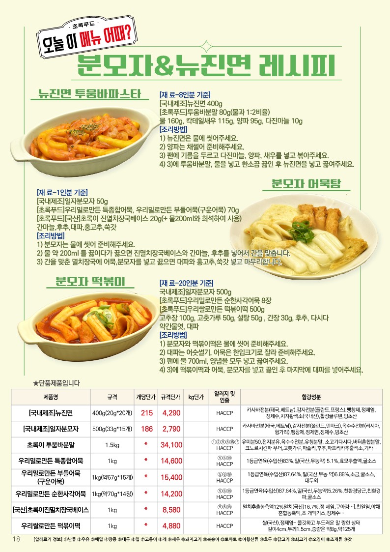 ✿✿[동원에프엔에프]초록푸드&급식대장 6월 단가표✿✿