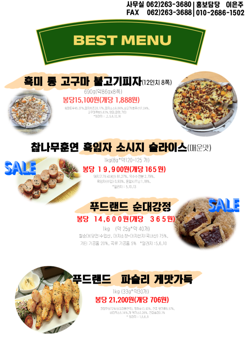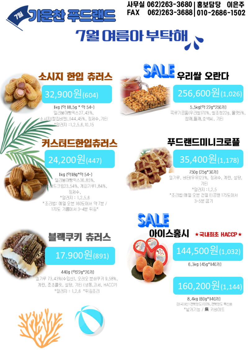 ❤️❤️❤️기운찬푸드랜드 7월 단가표 장어강정, 젤리가 톡톡 오렌지 톡톡젤리, 우리밀초코마들렌, 파메 생초코,아이스홍시,콘치즈꼬르동 / 미트볼 성분변경&애플크라운(냉동생지) 출고지연 관련 안내